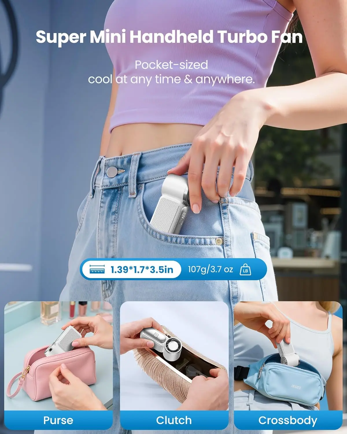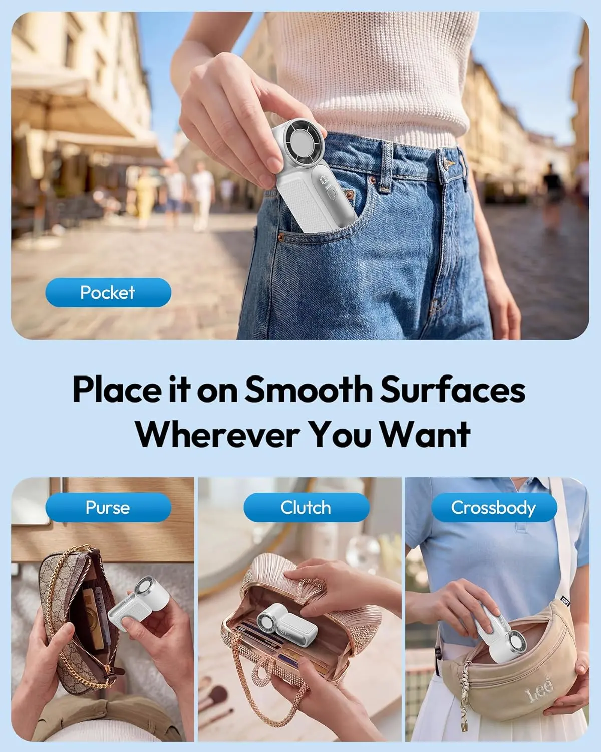 ·Ultra-Portable, Truly Pocket-Sized Mini Fan:** Weighing in at a mere 100g, this ultra-compact personal fan slips effortlessly into your pocket, handbag, or clutch. It comes with a detachable lanyard, allowing for completely hands-free use—making it the ideal companion for travel, commuting, or outdoor activities. This is a truly portable mini fan that goes wherever you go.