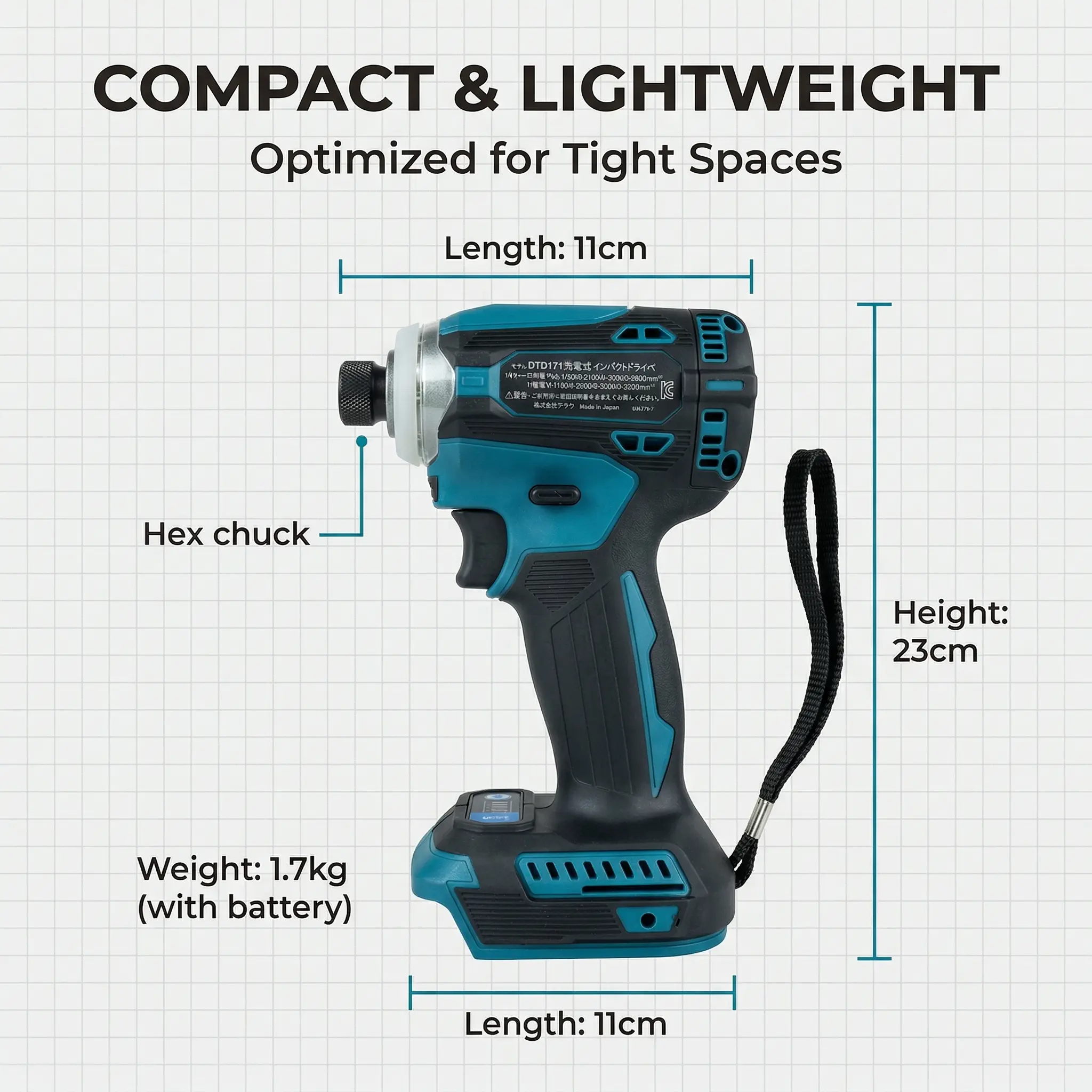 Makita DTD171 Cordless Impact Driver For Construction And Home Repair With Brushless Motor And Variable Speed