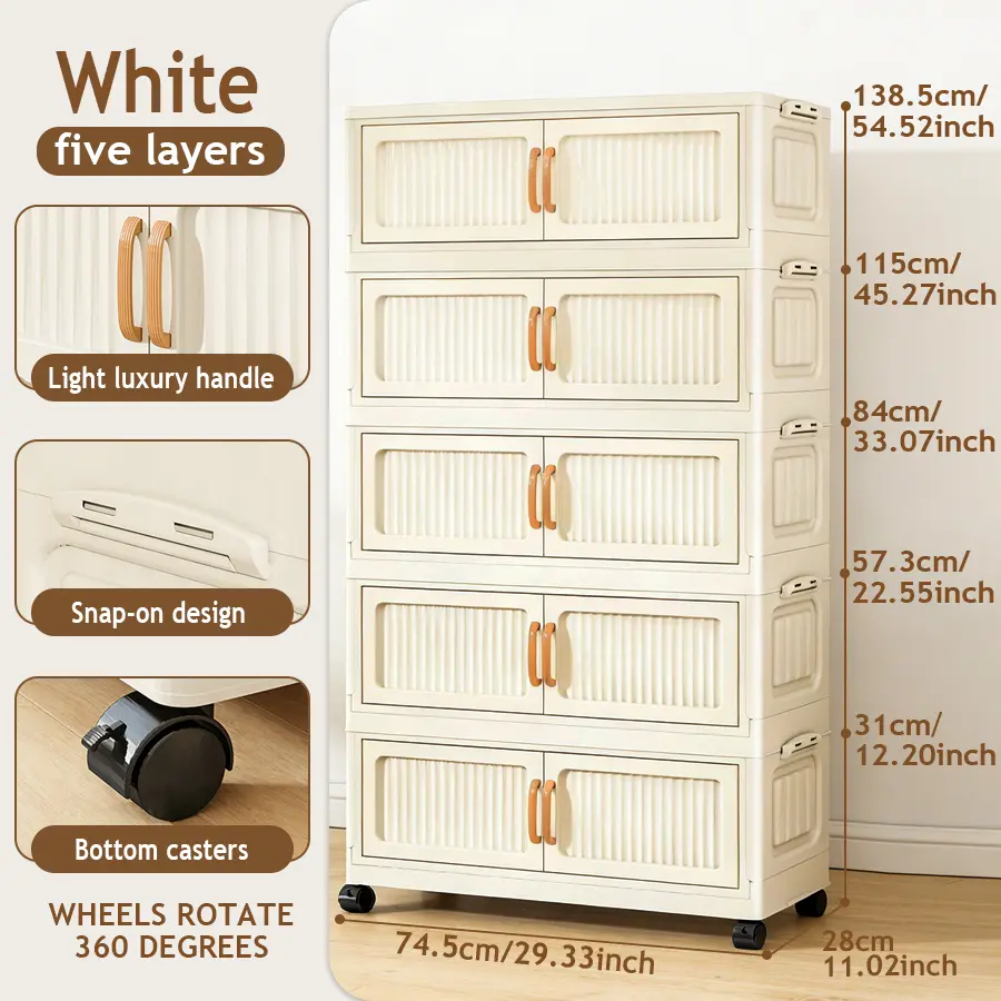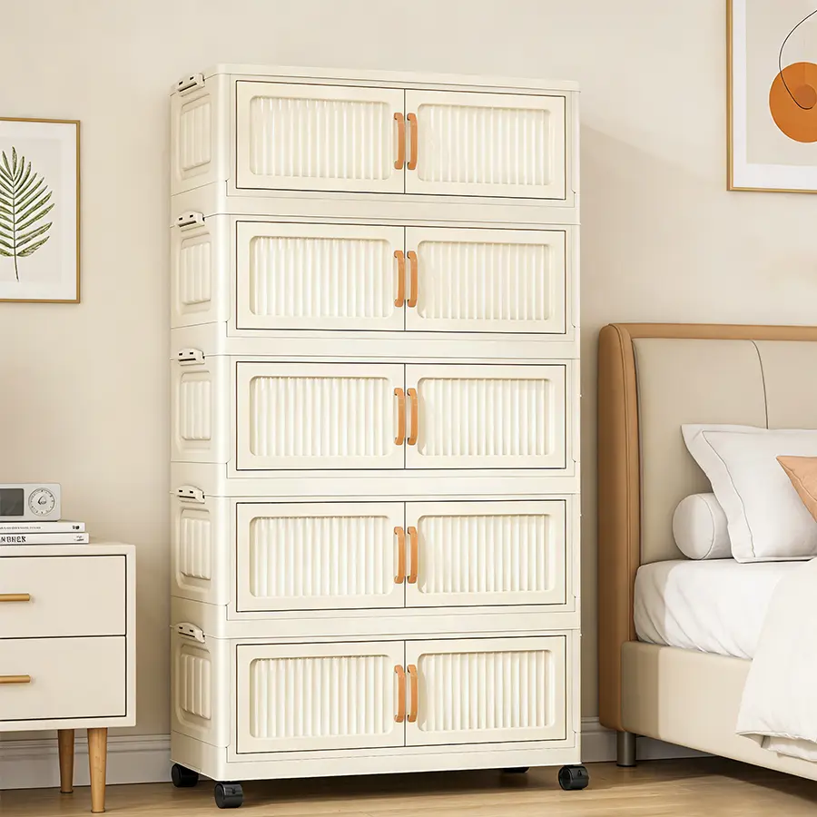 Foldable plastic storage cabinets with doors and wheels, suitable for large-capacity stacked storage in bedrooms, living rooms, and kitchens - high-quality, space-saving design, easy to assemble, transparent doors, magnetic closures, storage organizers.