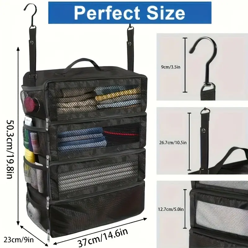 【Portable Rack】: Features a portable hanging rack, perfect for keeping belongings organized while traveling.