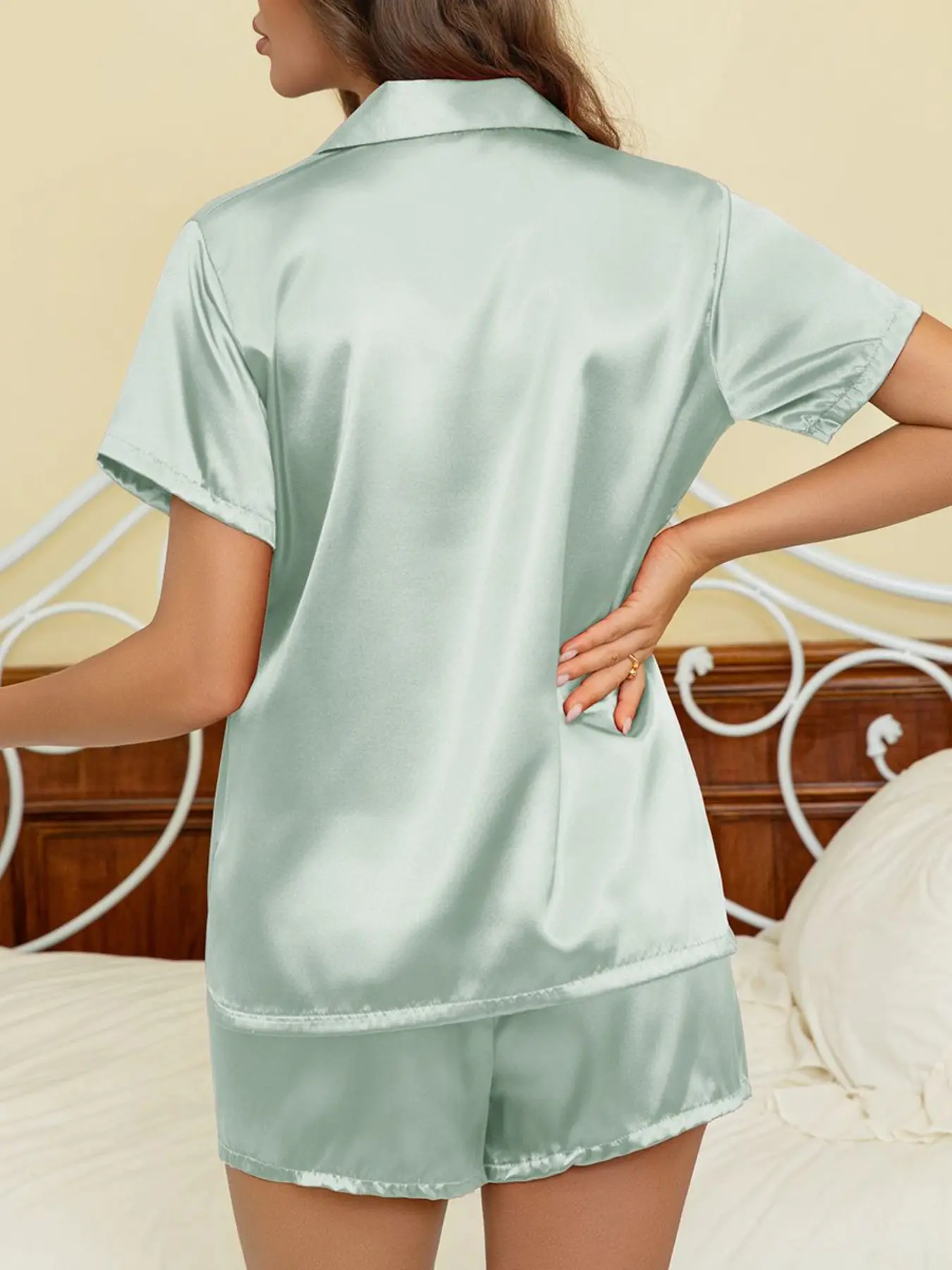 Elevate your loungewear collection with this luxurious Women's Satin 2-Piece Pajama Set, designed for ultimate comfort, elegant style, and a flattering fit, perfect for year-round home wear.