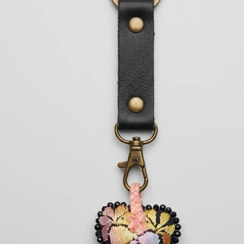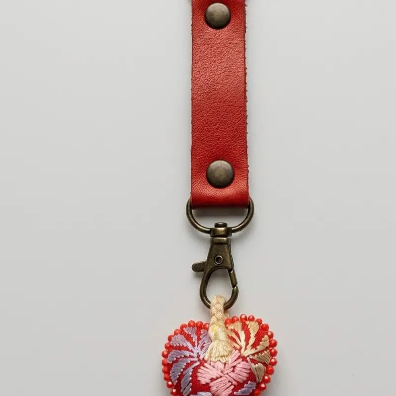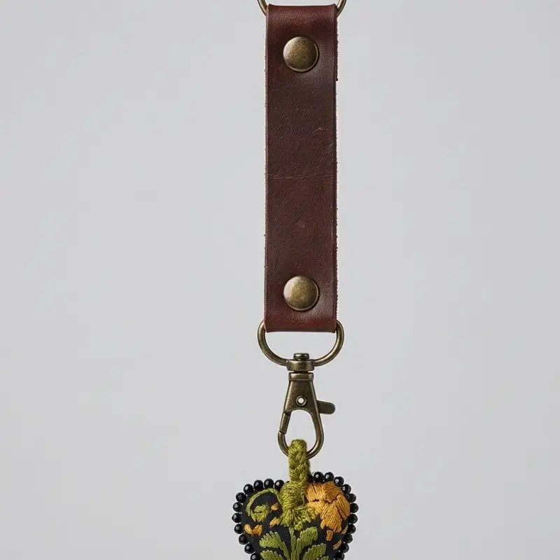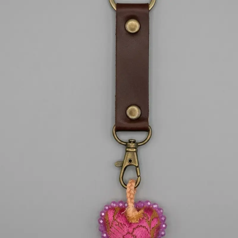 Más que un accesorio, es una pieza de arte que cuenta una historia. Nuestro llavero de piel genuina fusiona la elegancia duradera del cuero con el vibrante color de un corazón bordado totalmente a mano por artesanos expertos. Cada puntada es única, diseñada para quienes valoran los detalles con alma.