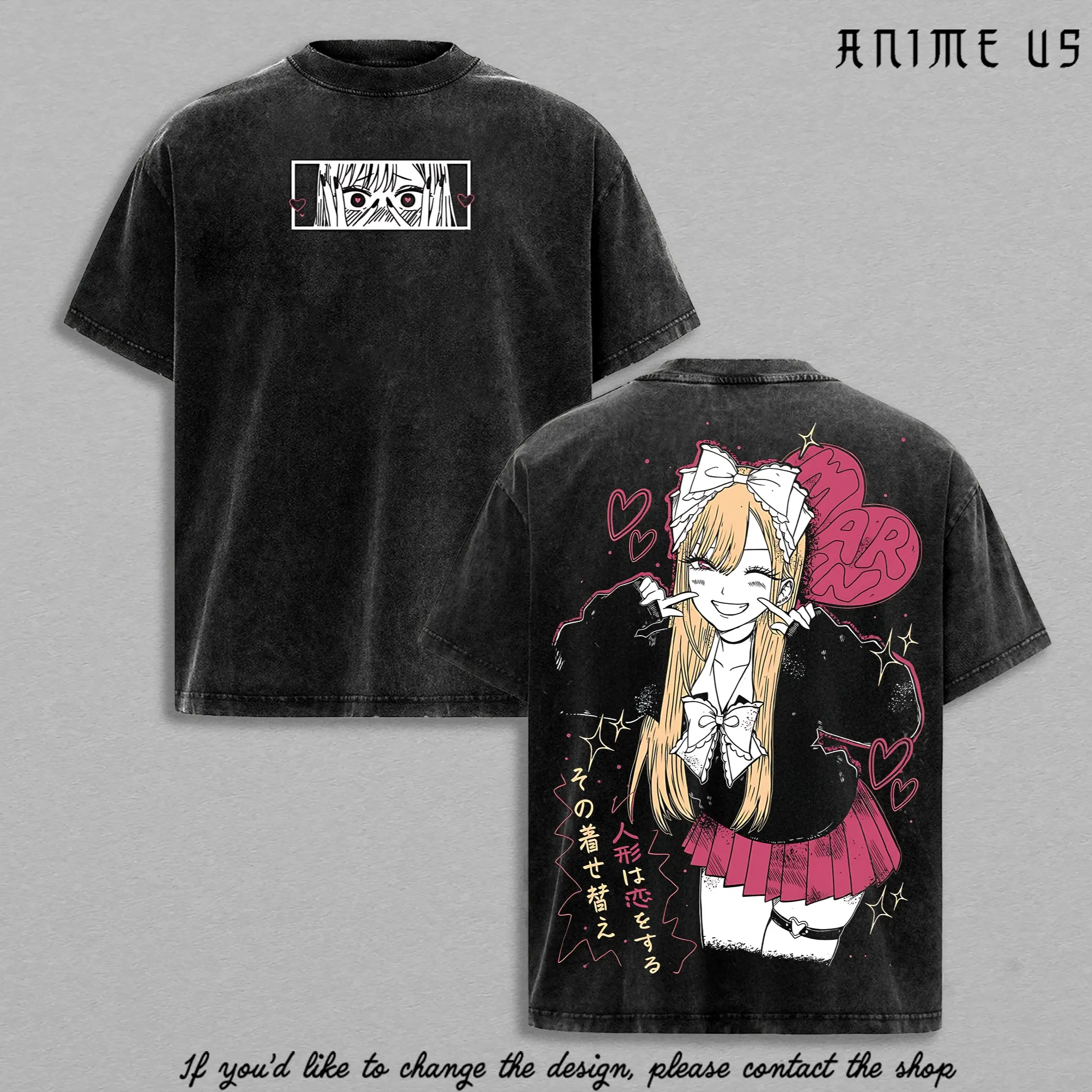 5. Marin Kitagawa Shirt My Dress Up Darling Anime Girl Waifu Graphic Tee Vintage Washed Kawaii Cosplay Girl Oversized Streetwear Shirt for Anime Fans