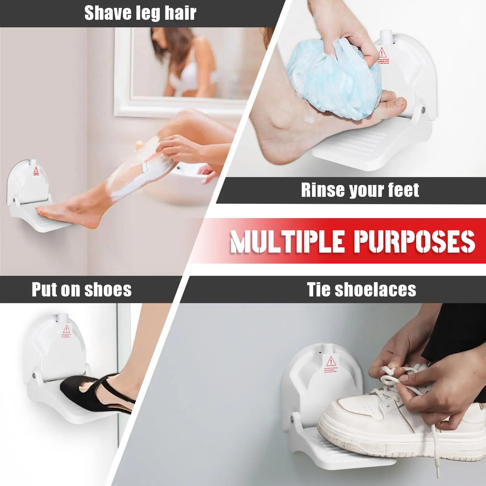 ·No More Bending and Keep Balance: You can suctioned the foot rest at right height to help you reach your legs and feet while shower. No more bending or stretching, perfect for pregnant women, seniors and back pain sufferers to do bathroom chores, the shower foot stand gives the access without the risk of falling.