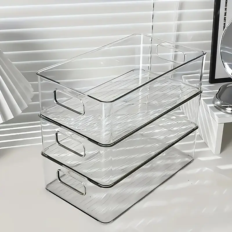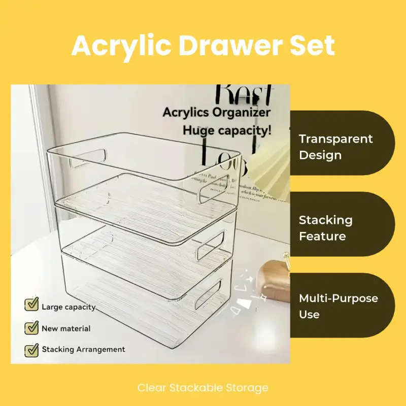 3 Pack Acrylic Drawer Organizer Clear Stackable Storage Box Kitchen Home Storage for Snacks Cosmetics Sundries Multi Purpose Container for Kitchen Bathroom Bedroom Living Room Office Christmas Halloween Gift Organization