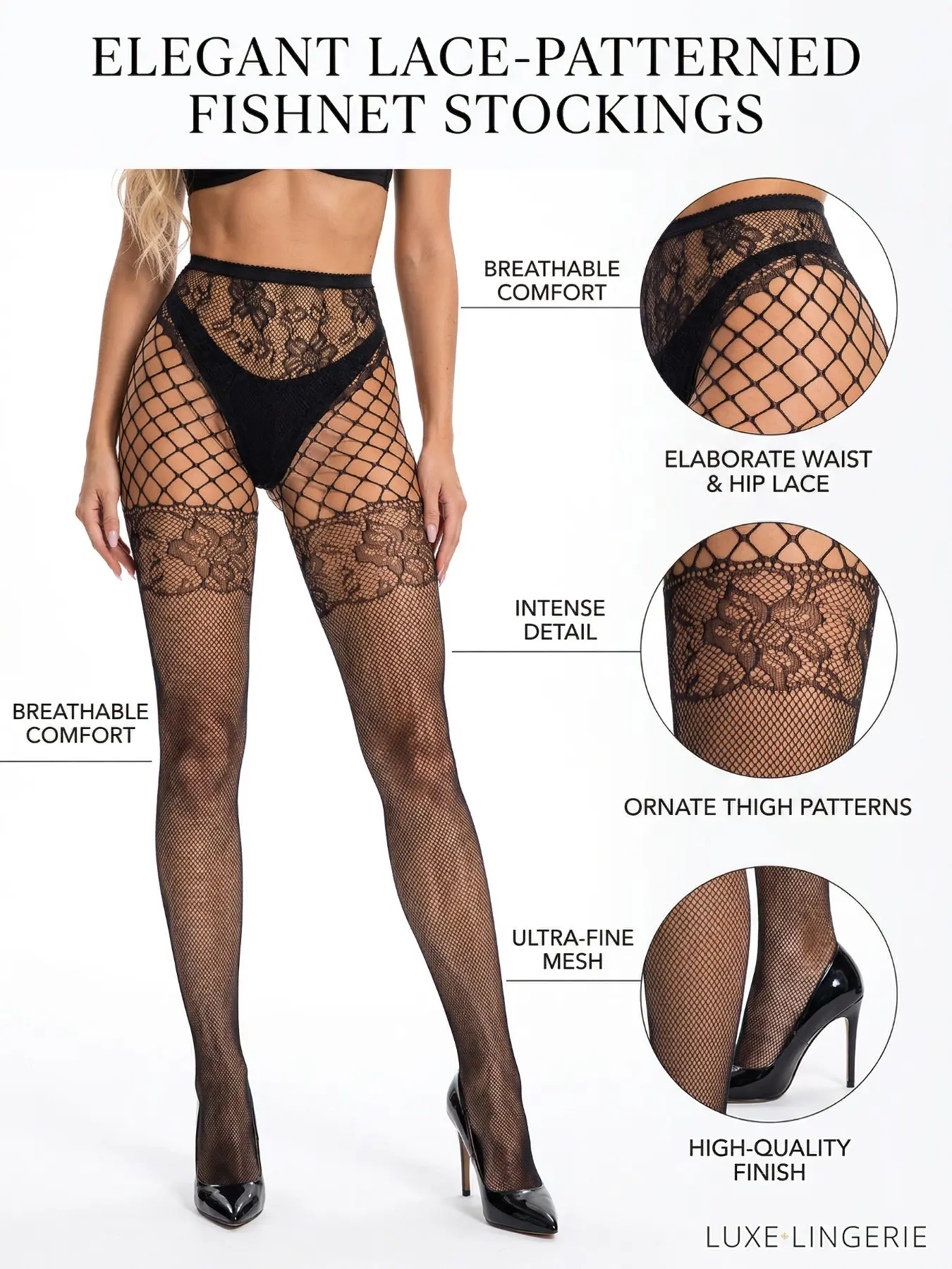 Women's Ultra-Thin Control Top Stockings, Lightweight Comfort, All-Day Perfect Fit, Bikini Mesh Pattern, 1 Pair Pack