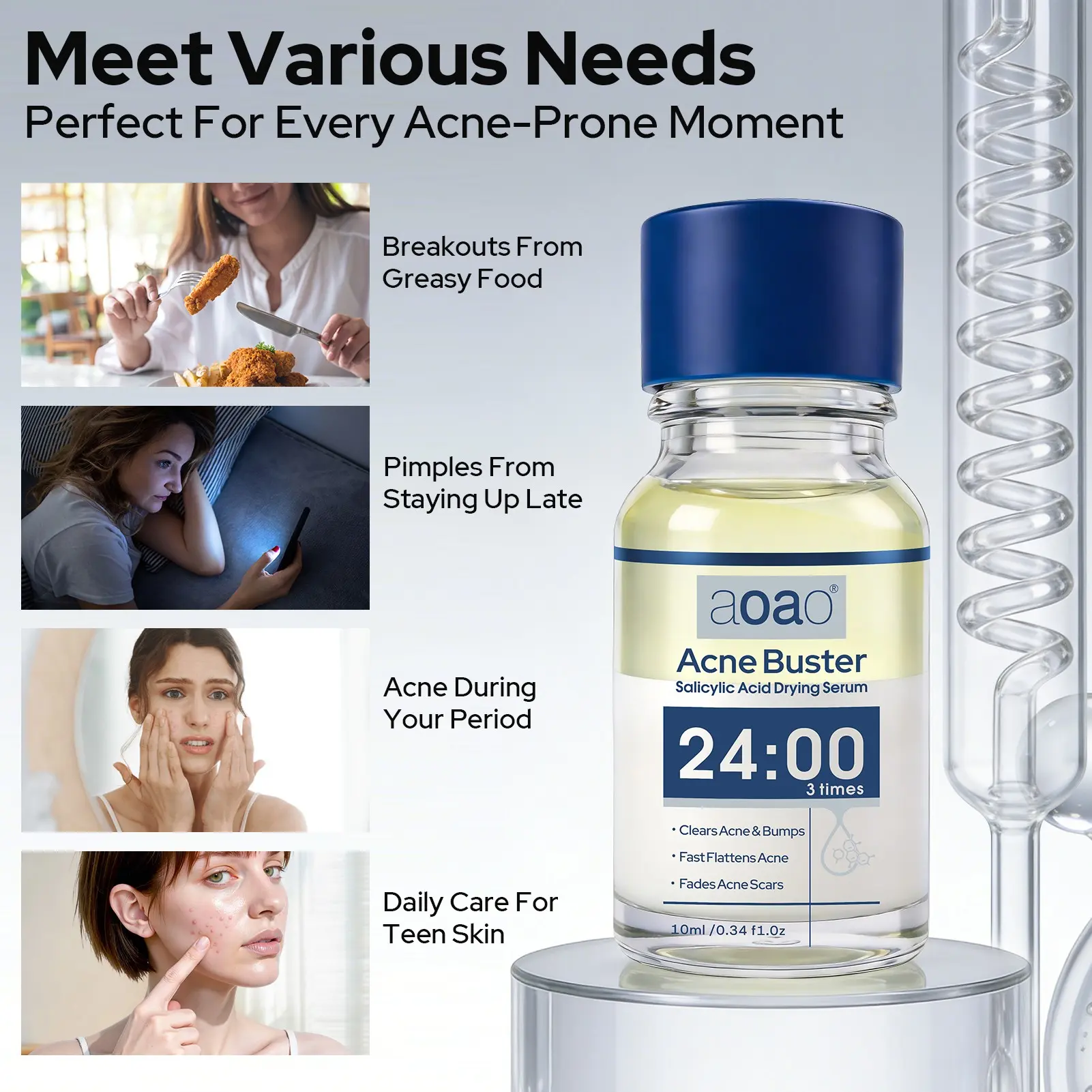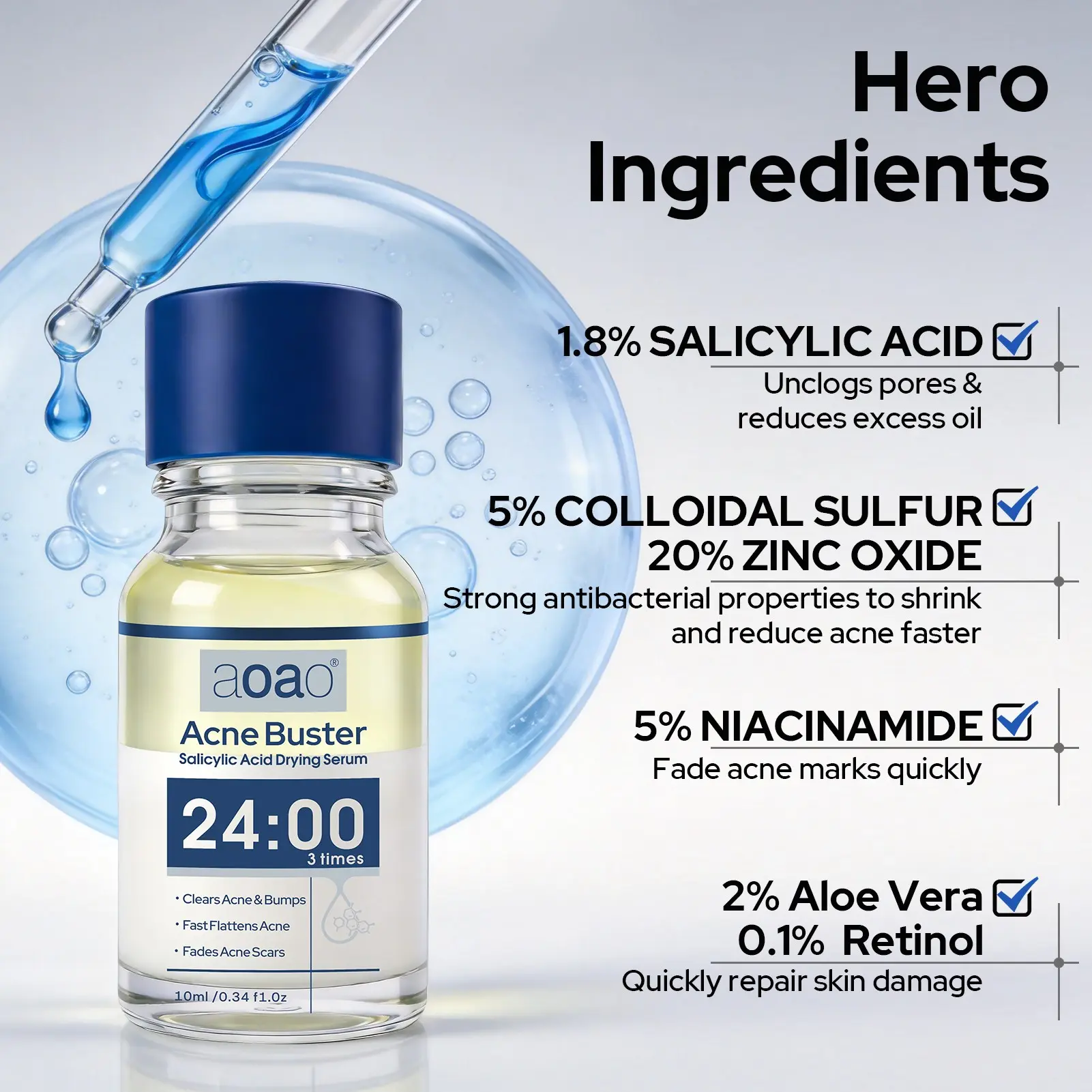 Salicylic Acid Drying Serum formulated to clear acne and bumps, fast flatten active breakouts, and fade acne scars for clearer, smoother skin