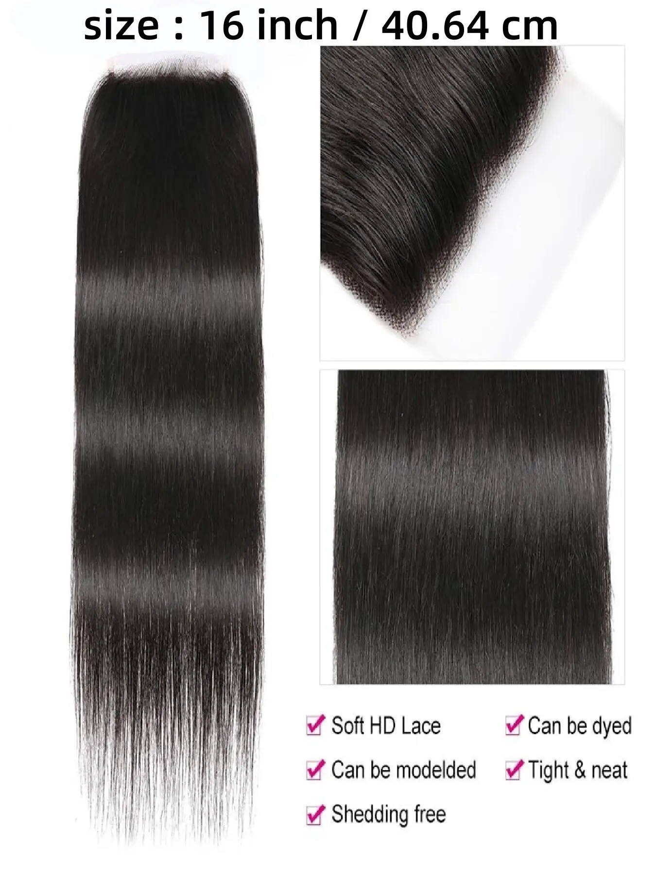 5x5 Straight Lace Closure Human Hair Hd Transparent Lace Closure Free Part Pre Plucked with Baby Hair 10A Virgin Human Hair Lace Front Natural Black Color 8-18 Inch
