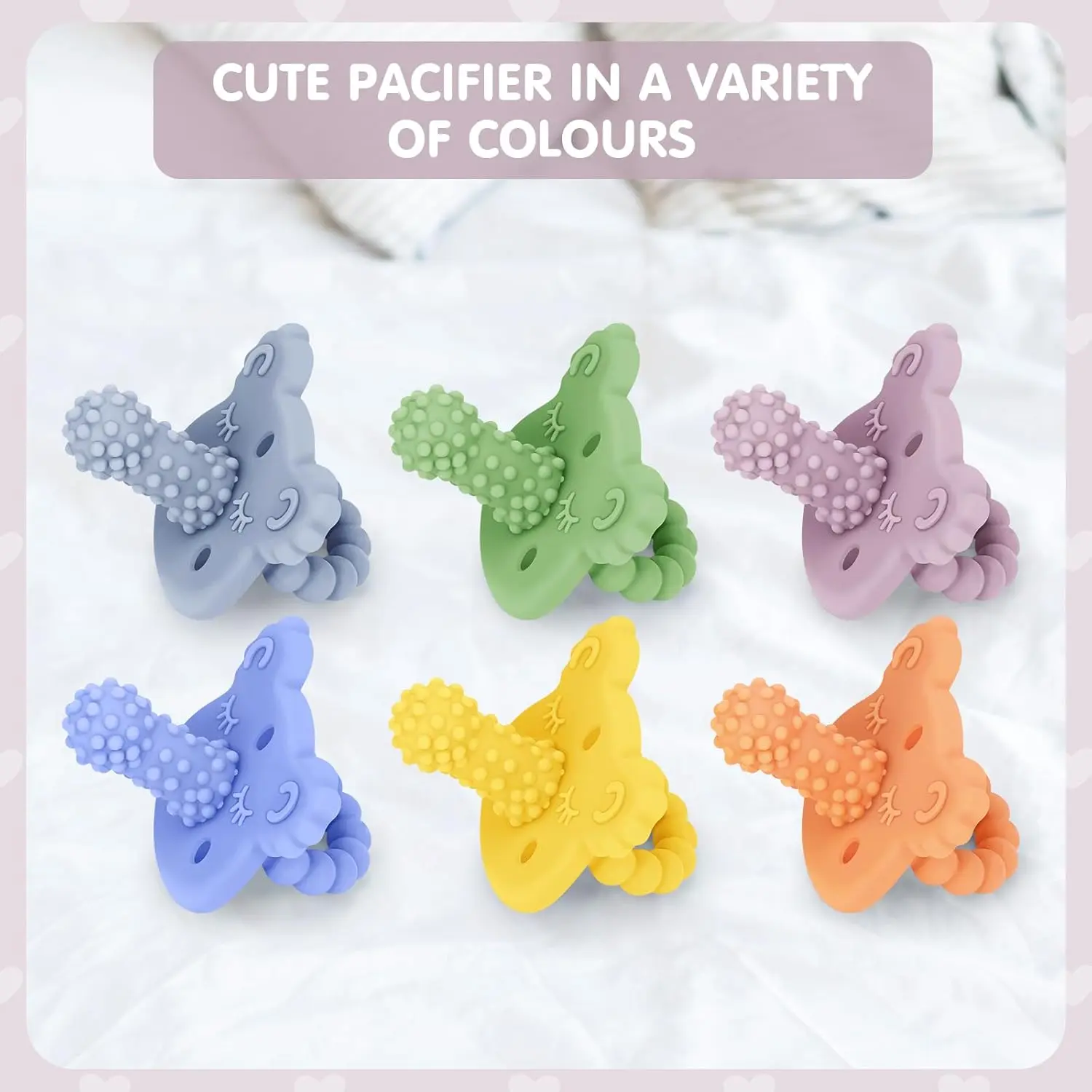 Package Includes: 6 x Teether Pacifiers
