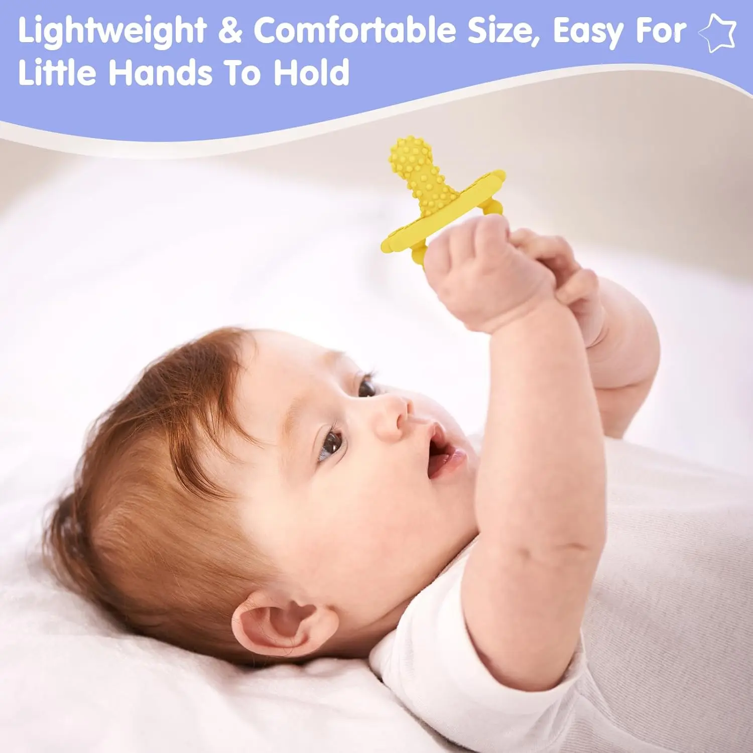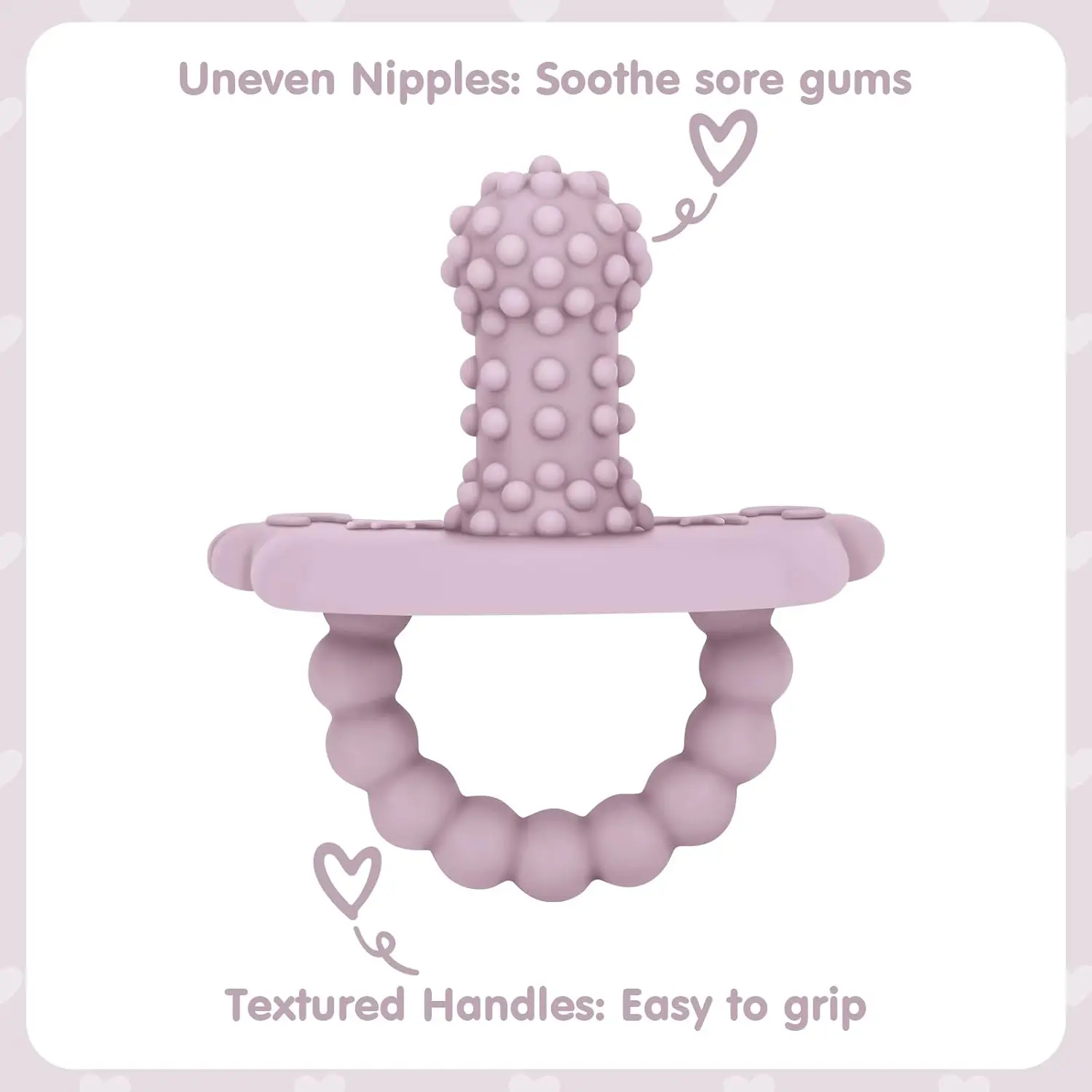 The grainy bumpy texture on the baby teether gently massages the gums to relieve teething pain, soothes baby's irritation during the teething stage and helps baby grow teeth comfortably.