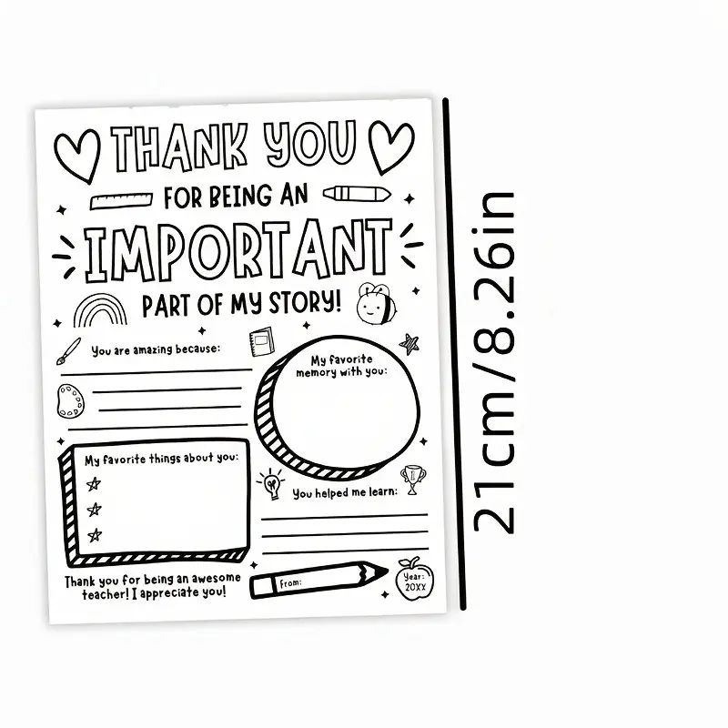 10 Sheets Party Activity Supplies Teacher Thank You Coloring Pages, DIY School Gratitude Gifts, Perfect for Teachers Appreciation