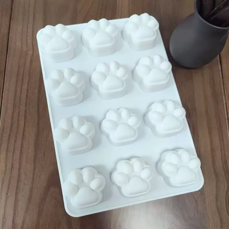 12-Compartment DIY Silicone Cat Paw Mold, Food Grade Baking Mold, Easy Clean, Semi-3D Cute Cat Paw Cake Mold, Soap & Gypsum Mold