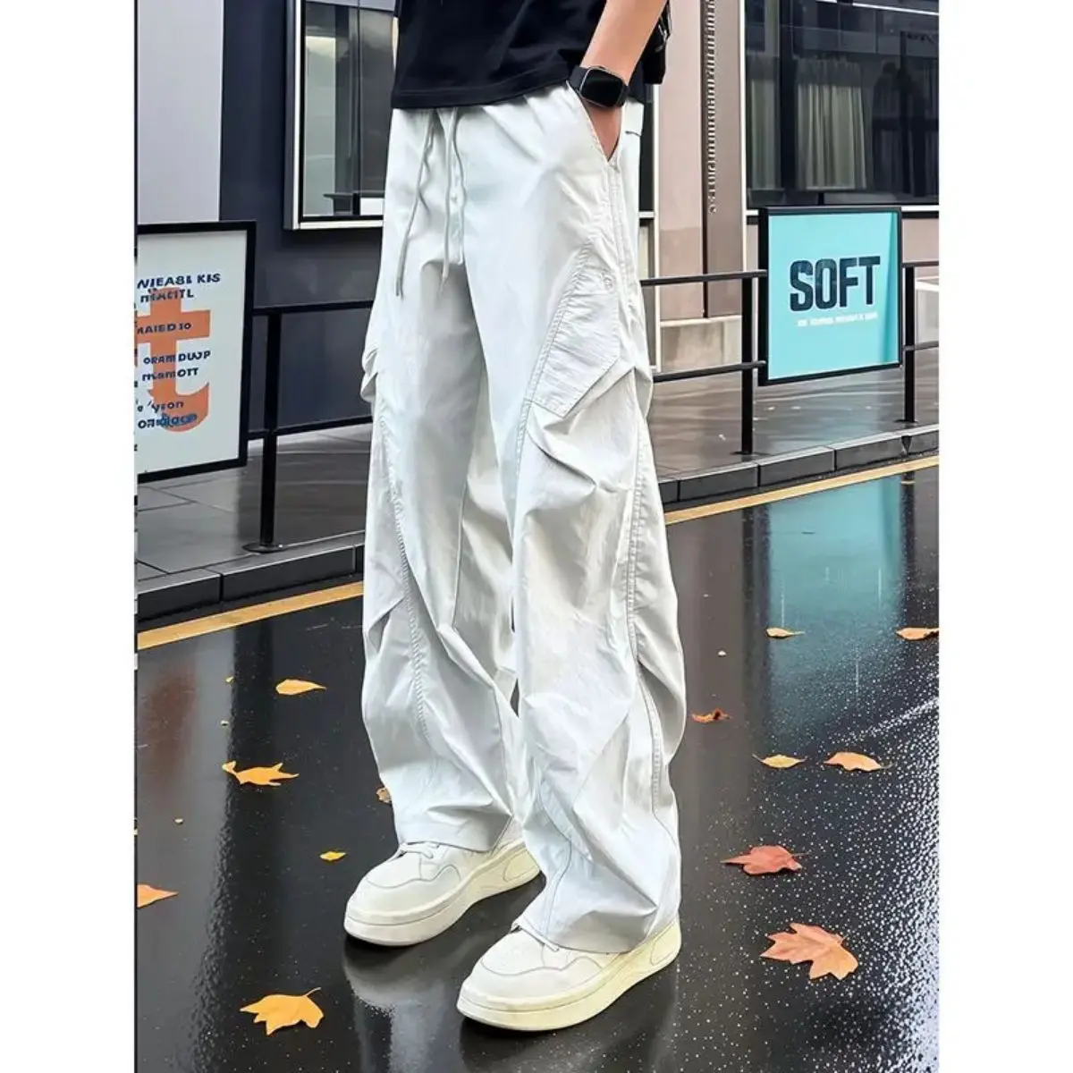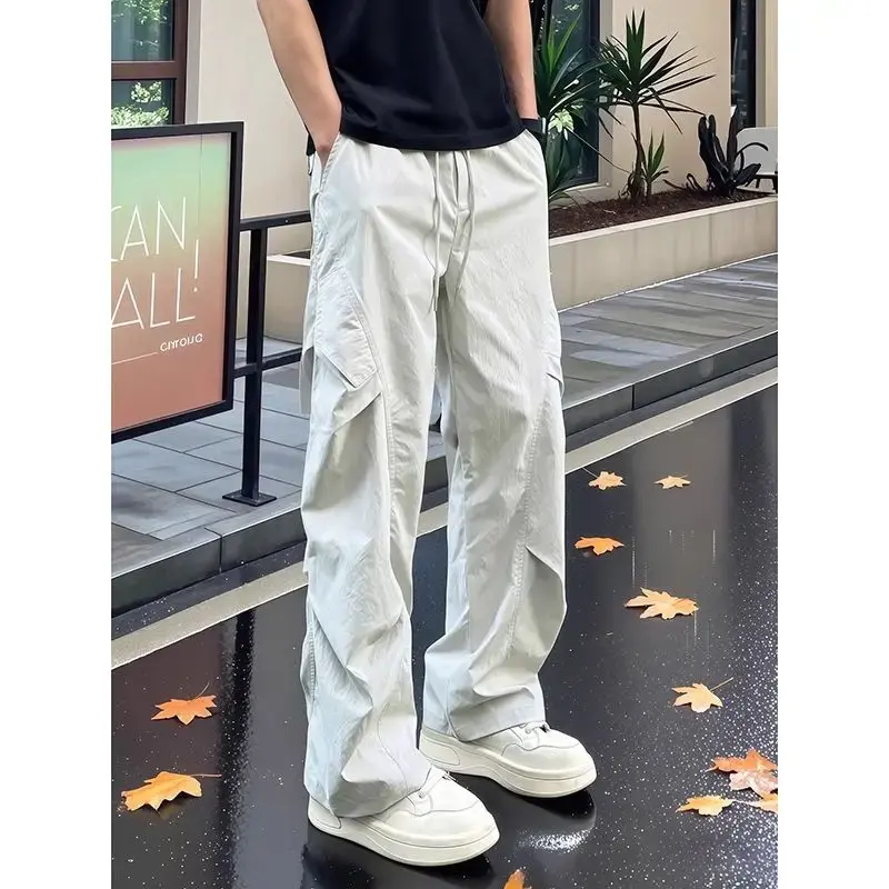 These mens cargo parachute pants are crafted with a lightweight build for effortless all-day wear, boasting a casual loose fit and a clean straight-leg cut that suits modern streetwear perfectly. Designed to be quick-drying and breathable, they keep you comfortable during outdoor activities, casual strolls, daily commutes, and relaxed hangouts with friends. Featuring functional cargo styling and a relaxed silhouette that allows full freedom of movement, these trousers blend practicality with on-trend urban aesthetics, making them ideal for everyday casual dressing, light outdoor adventures, and contemporary street-style outfits.Material: High-quality