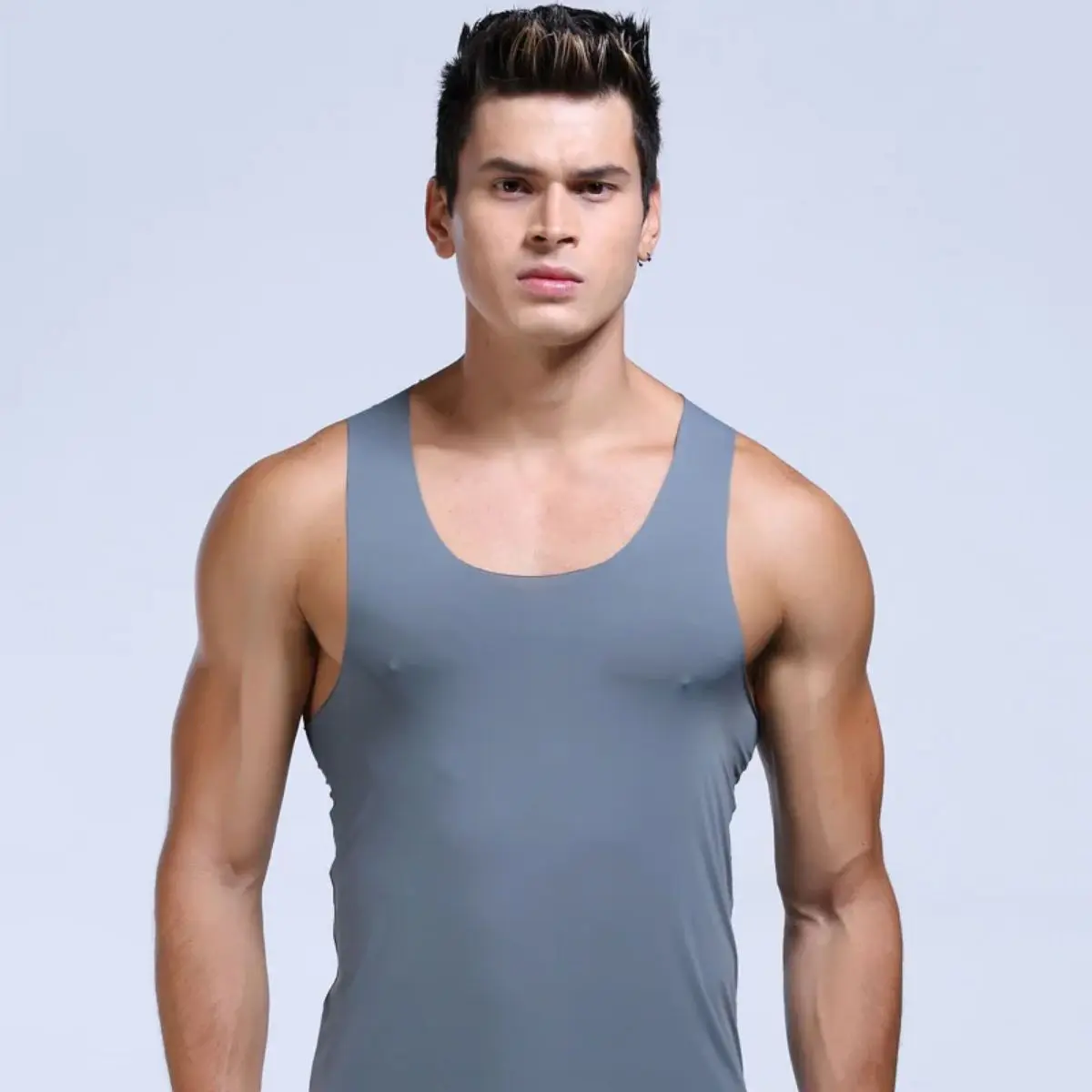 These mens ice silk sports vests feature a clean solid-color design with a streamlined I-word profile, creating a sleek and minimalist athletic look. Built as a one-piece base layer, they offer a tight, body-hugging fit that supports muscles during training, while the smooth, trackless construction ensures no irritation during movement. Lightweight and comfortable, they are perfect for fitness, gym workouts, running, and daily athletic wear, providing a close yet flexible fit for all kinds of exercise. Simple, functional, and stylish, this sleeveless base shirt is ideal for active men who value both performance and a clean modern look.Material: High-quality