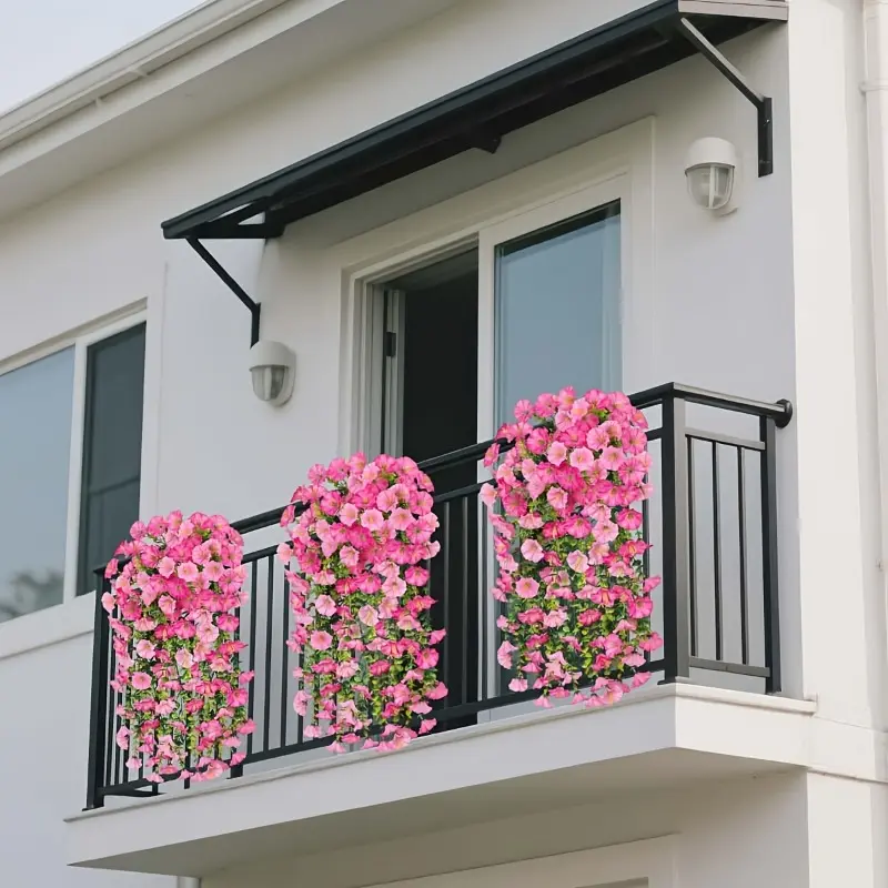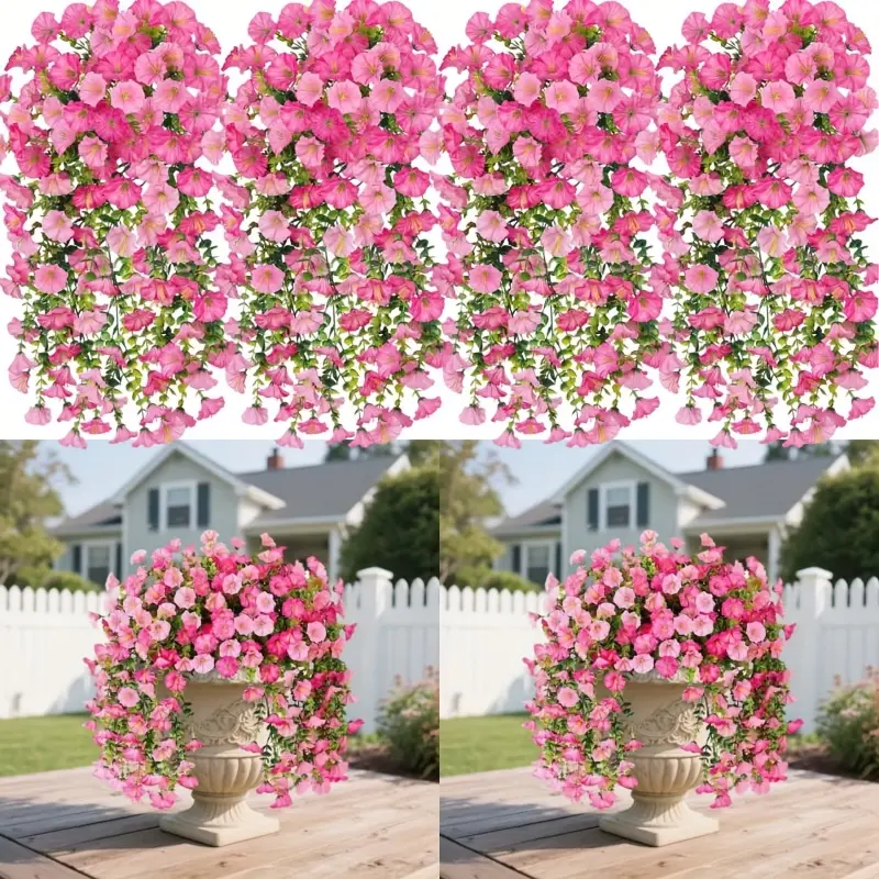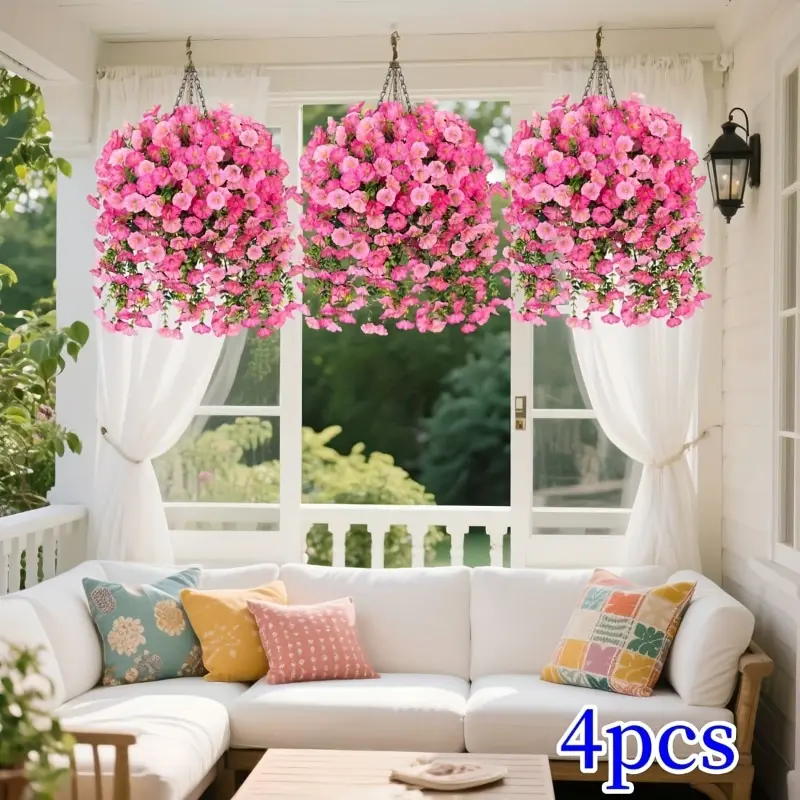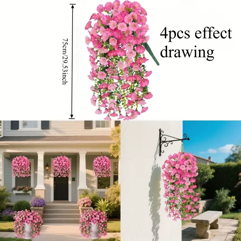 2 Set Artificial Outdoor Flowers Artificial Hanging Flowers Plant UV-resistant Windproof Waterproof Faux flowers with 2 Hanging Basket 2 Hanging Planters 40 Flowers for Spring Summer Porch Home Outdoor Decoration Garden Pot Front Courtyard Patio Lawn