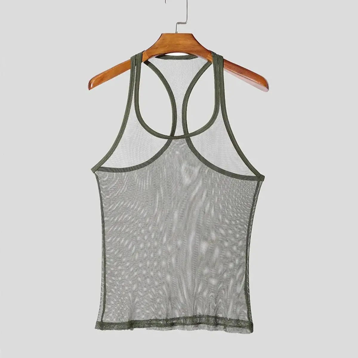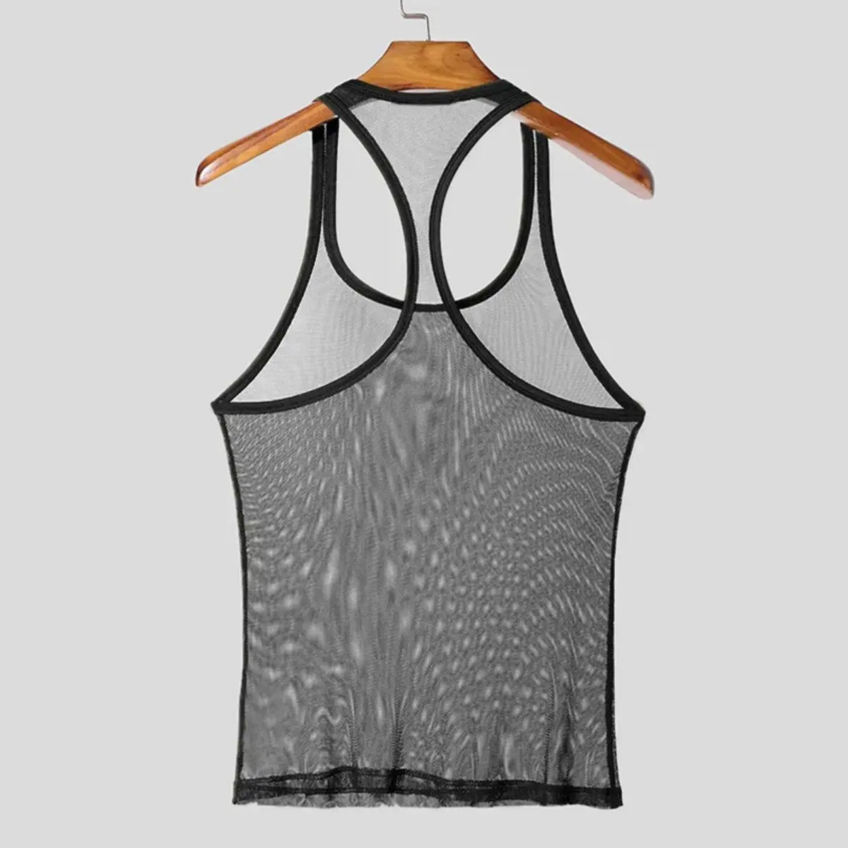 Kyn Apparel Men's Sexy Mesh Sports Tank Tops Chic Hollw Out O Neck Sleeveless T-shirt Breathable Solid Color Crop Vests Summer Fitness Tops