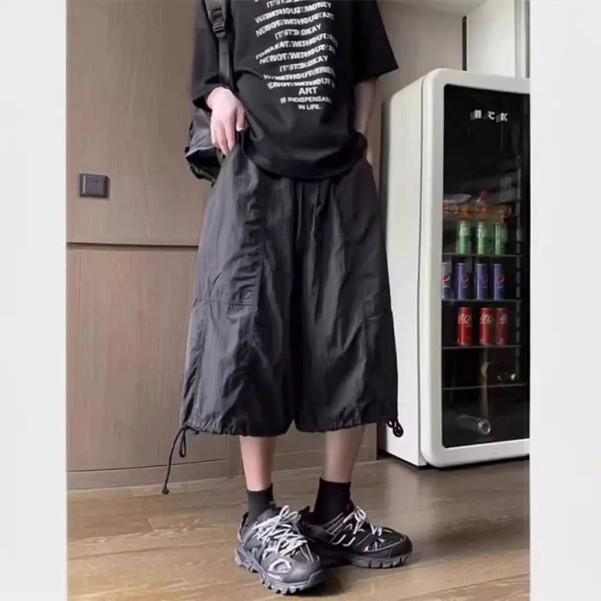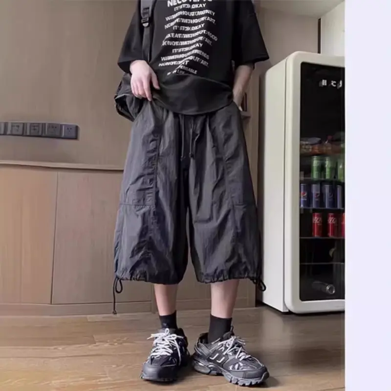 These mens seven-point cargo pants are designed for summer, featuring a cool and lightweight fit with quick-drying performance for all-day comfort in hot weather. Inspired by American-style parachute pants, they have a loose, stylish silhouette with functional pocket details that enhance both practicality and street fashion sense. Perfect for daily commuting, outdoor walks, travel, beach trips, casual hangouts and summer street styling, they pair easily with T-shirts, tank tops, casual shirts and sneakers for a fresh and trendy look.Material: High-quality