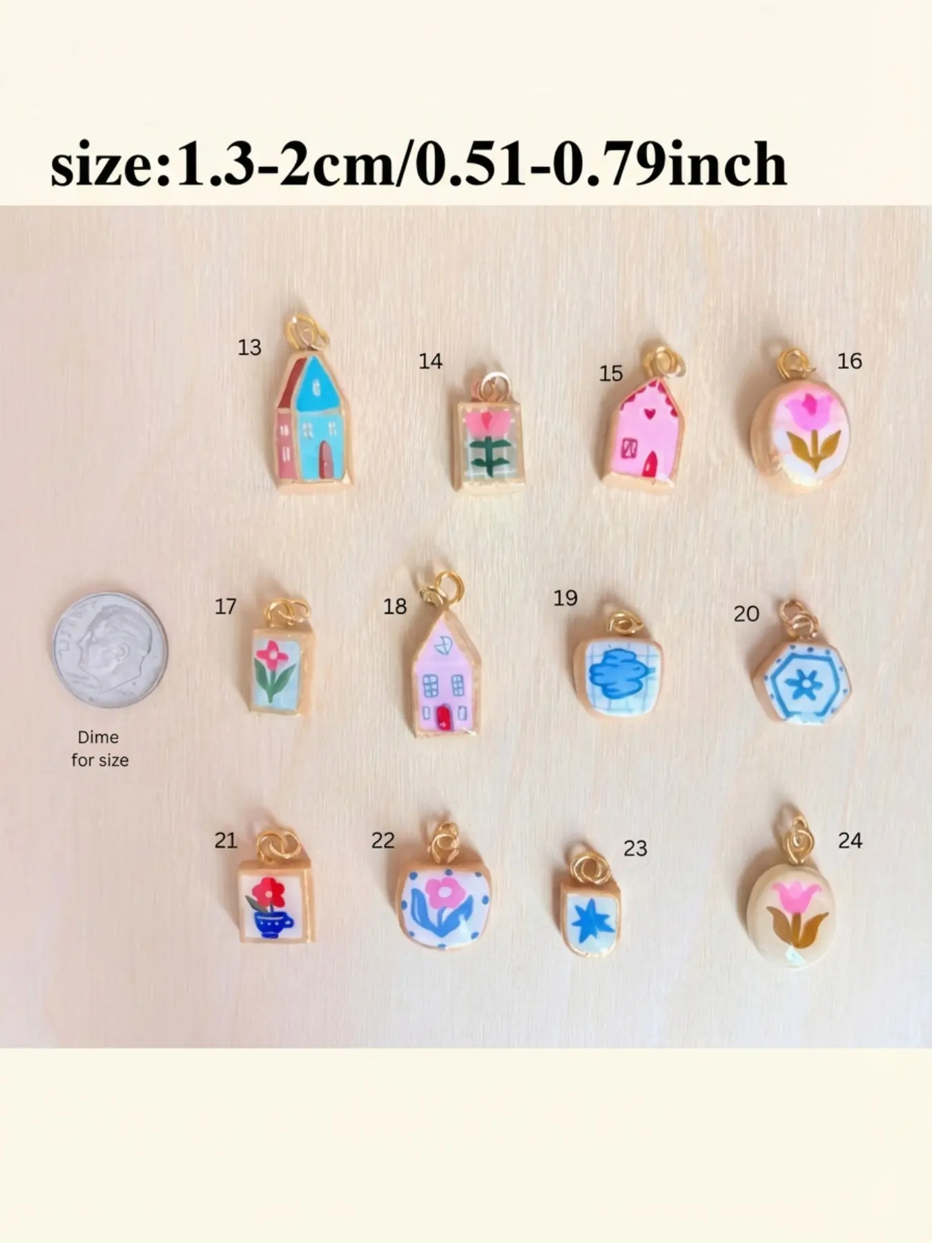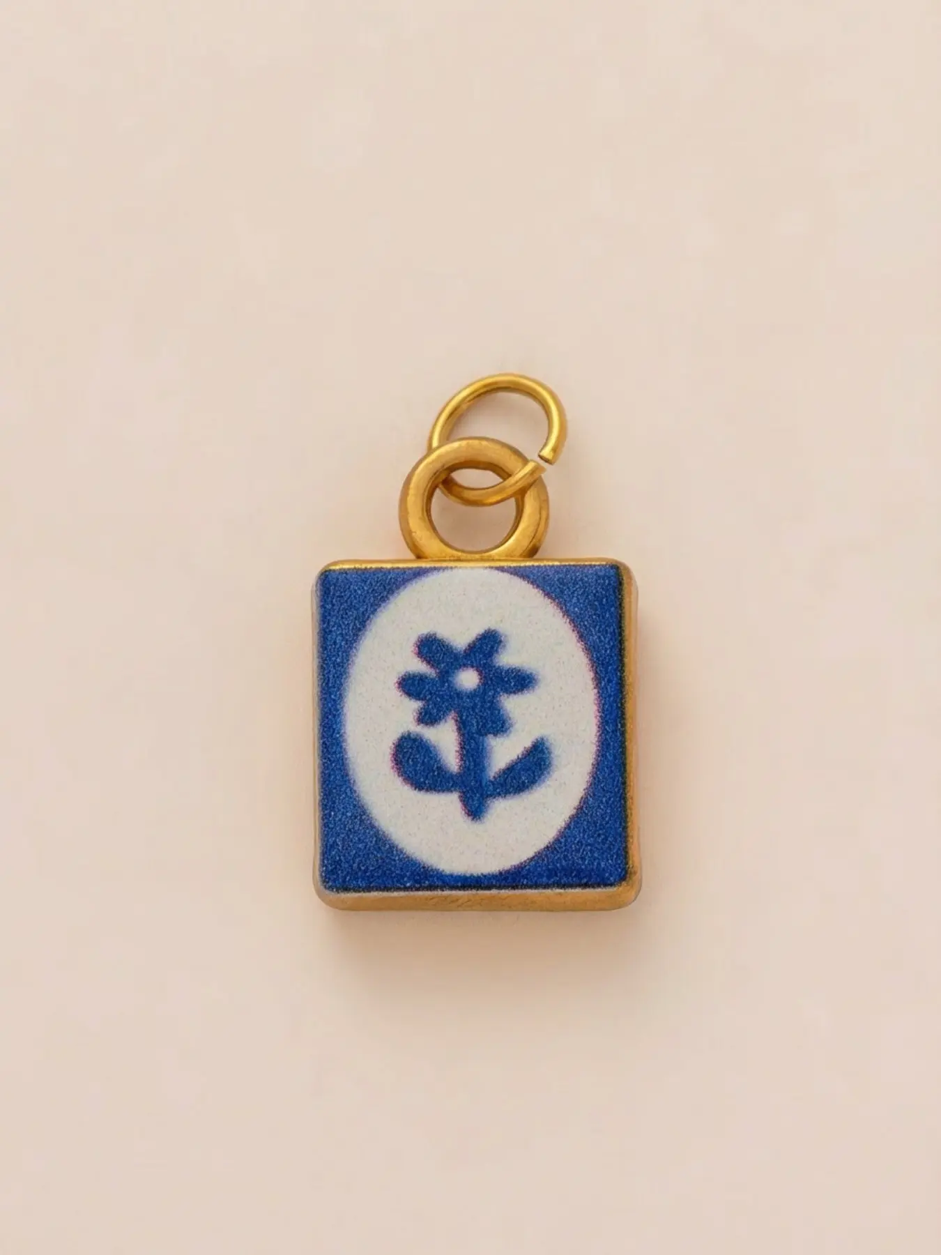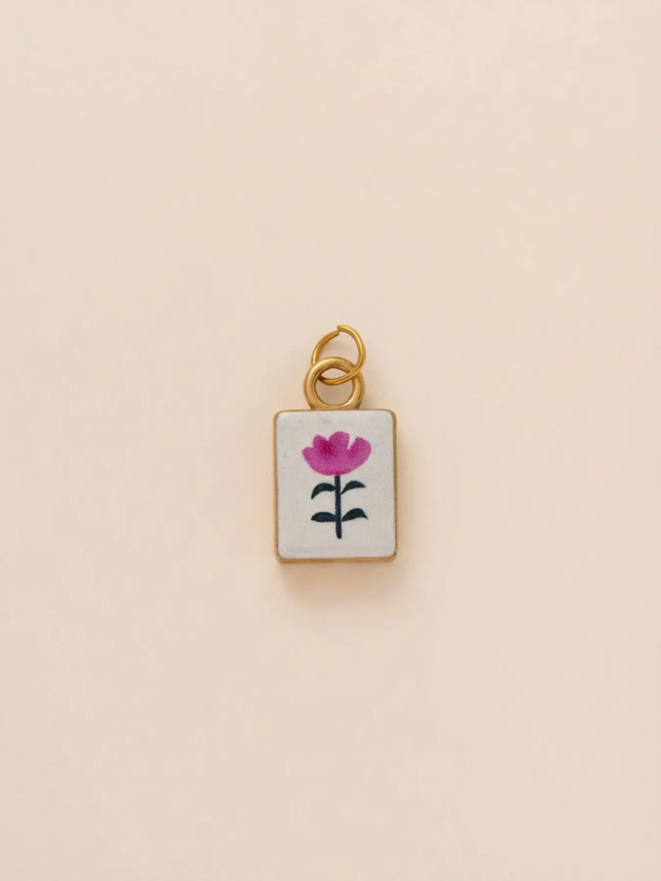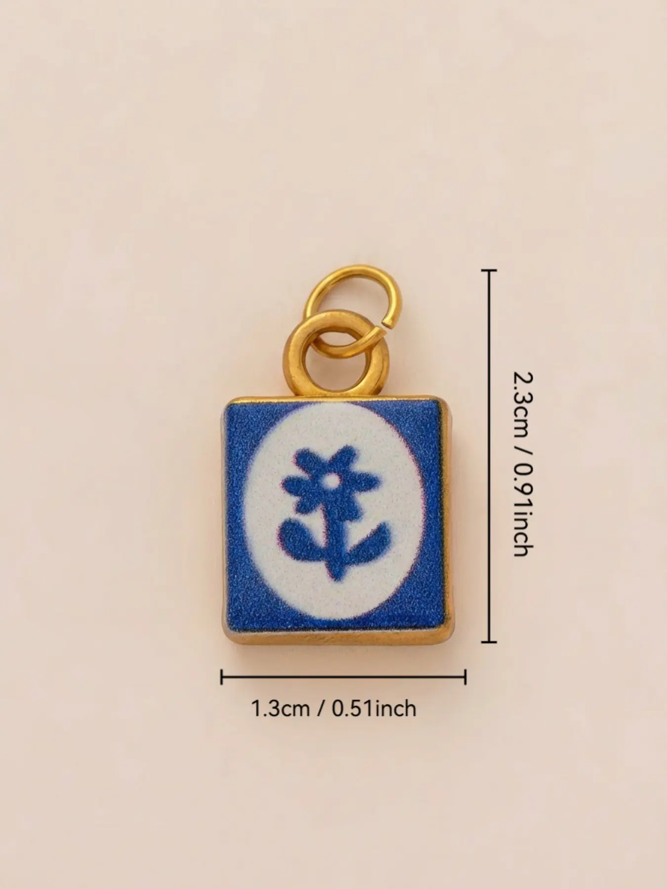 5. 1PC stylish and minimalist commuter-style pendant, enamel painted, square, floral series pendant, 18K gold-plated stainless steel, suitable for DIY fashion accessories such as keychains, bags, and jewelry.