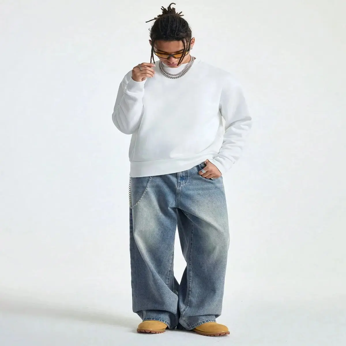 These Y2K-inspired mens wide-leg brushed jeans are a standout addition to your streetwear collection, blending vintage hip-hop style with modern comfort. Made with soft brushed fabric for a cozy, premium feel, they feature a bold wide-leg and baggy silhouette that captures the iconic Y2K rock and hip-hop vibe. The classic black color adds versatility and edge, perfect for creating eye-catching urban outfits. Ideal for daily street style, casual outings, music events, weekend gatherings, and trend-focused wear, these jeans pair effortlessly with oversized tees, hoodies, graphic tops, and sneakers. Designed for both fashion and comfort, they deliver a relaxed, effortless fit that stays true to the authentic hip-hop and Y2K aesthetic.Material: High-quality