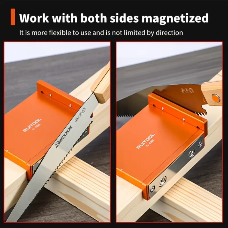 Double-sided magnetic saw guide, 90-degree aluminum alloy woodworking cutting jig, portable right-angle cutting guide, suitable for hand saw woodworking
