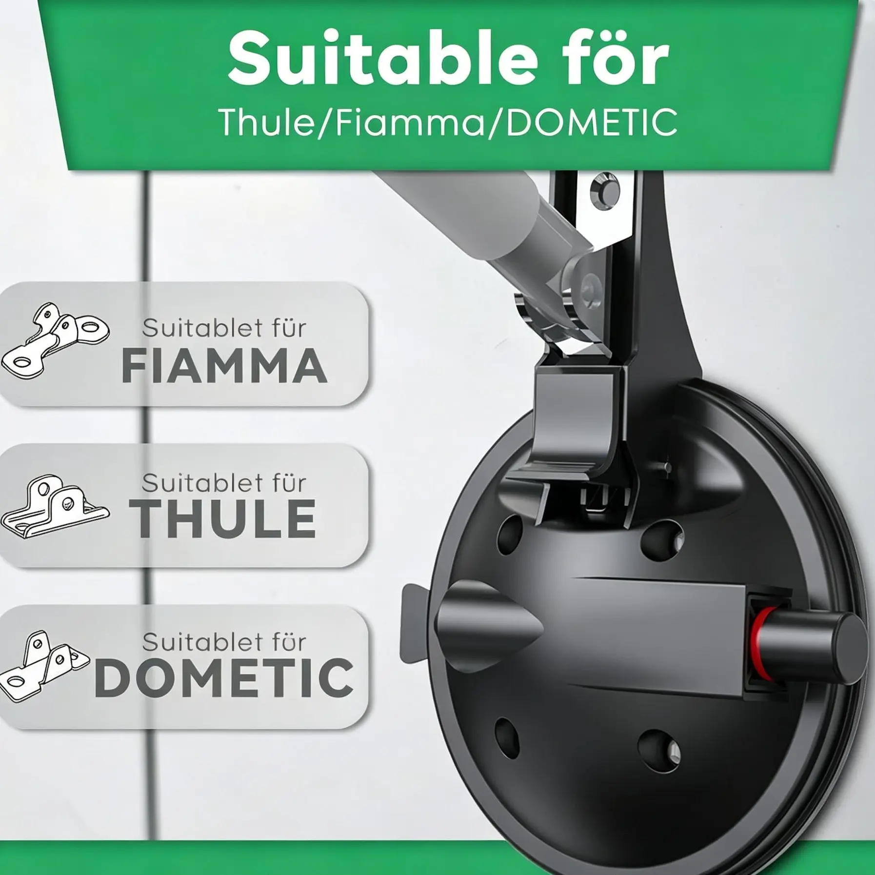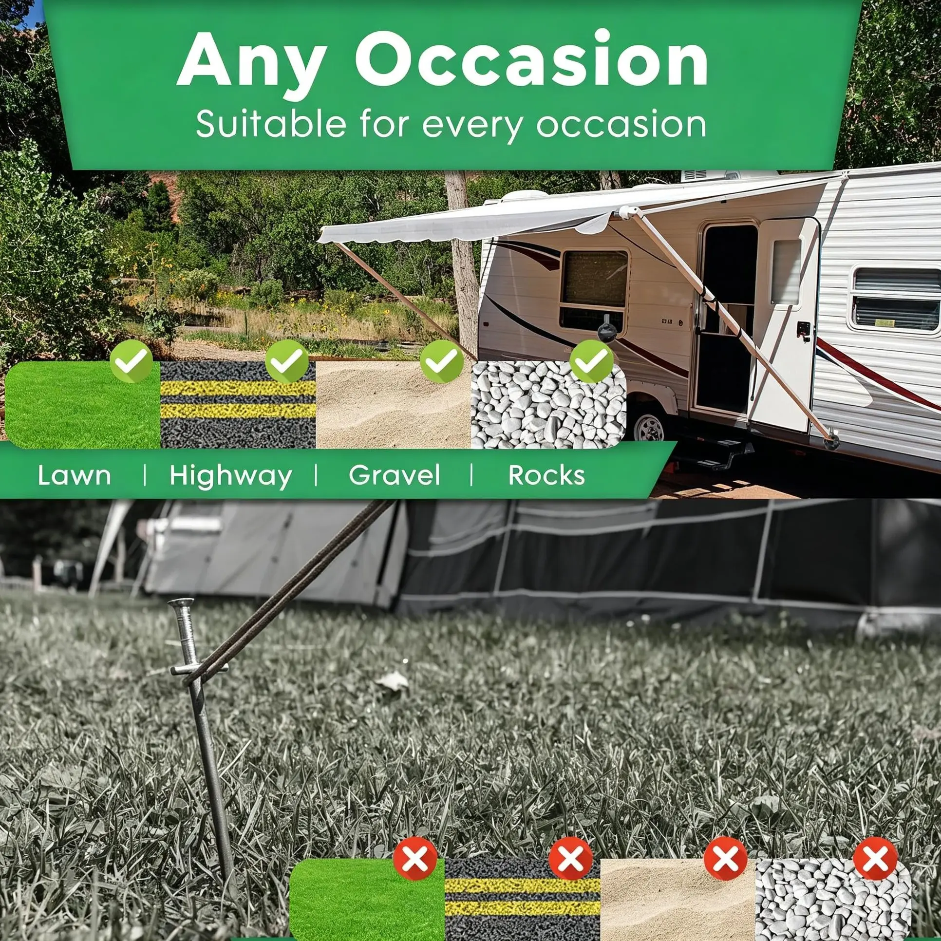 ·Easy to Install and Disassemble :Specially designed to fix the awning legs, saving a lot of time. Just stick it on a smooth surface and press the button to squeeze out the air to fix it. To remove it, just pull the it eyelet on the side horizontally, if the suction is too strong, you can remove it by pulling it several times