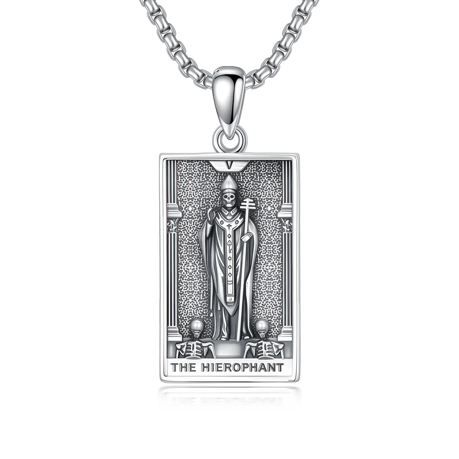 MEIDERBO Dream Chaser The Hierophant Necklace 925 Sterling Silver Oxidized Finish Tarot Pendant Stainless Steel Bead Chain 22+2 Inch Bella Chain Spiritual Jewelry