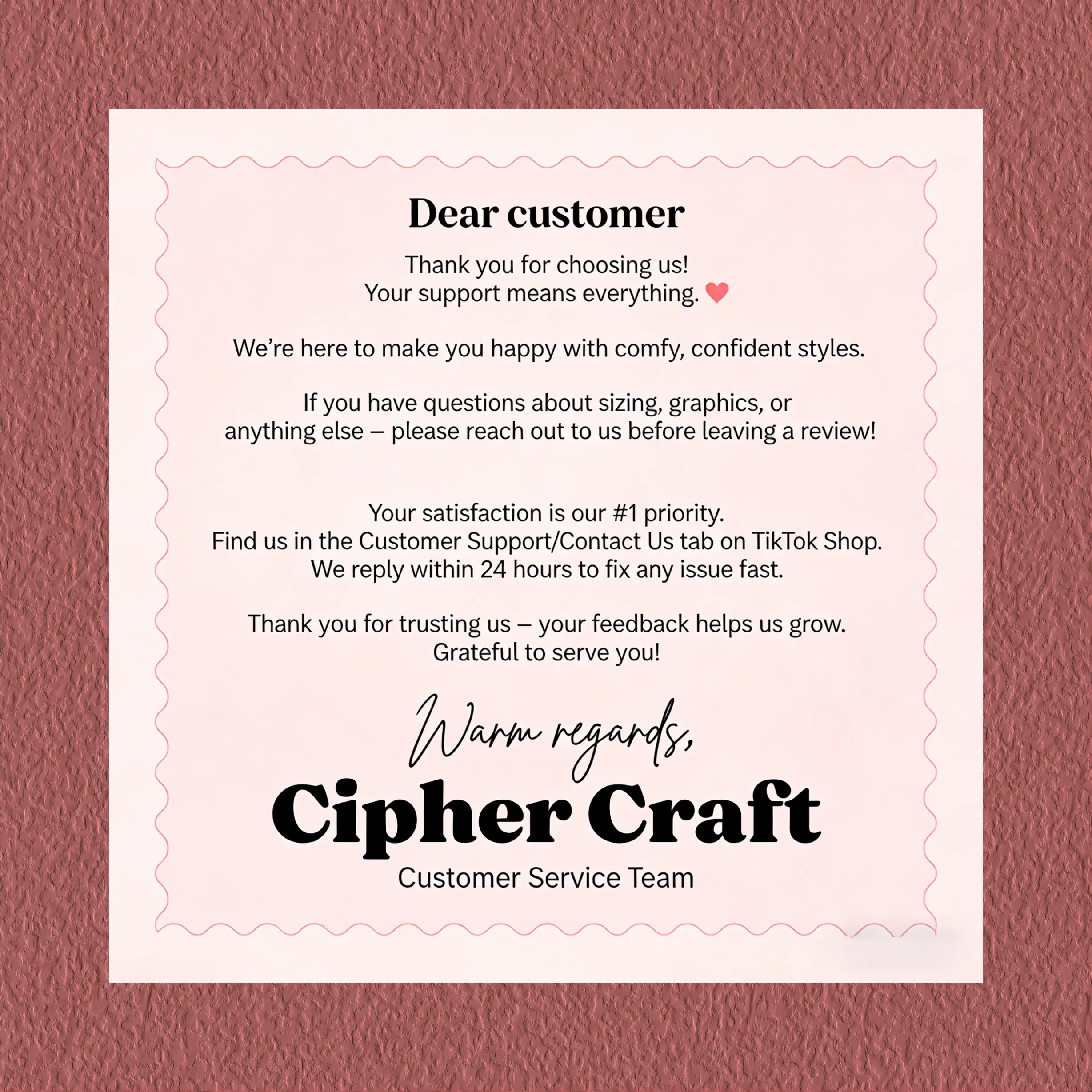 100% Original Unique Design, Never Generic, Never Duplicated
