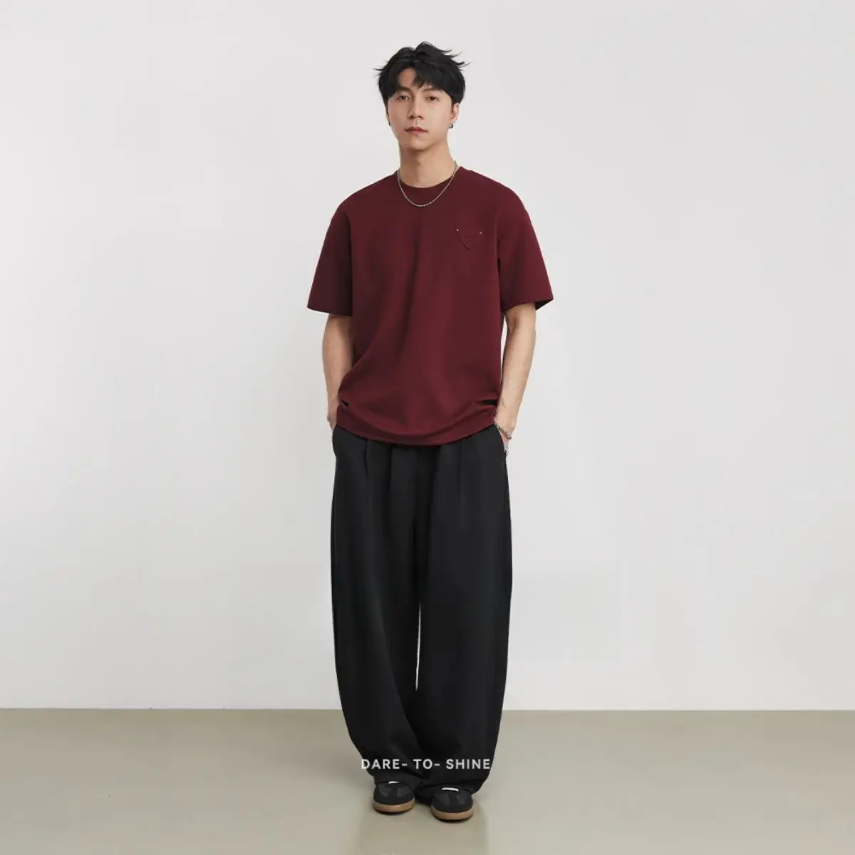 This 2026 summer new men's short-sleeve T-shirt is made of heavyweight 280g pure cotton, with a classic crew neck and minimalist solid color design. The thick cotton fabric is soft, breathable and textured, not easy to deform or fade, bringing a comfortable and cool wearing experience in hot weather. The small triangle label adds a delicate detail touch, enhancing the overall sense of premium. With a loose and versatile regular fit, it matches easily with jeans, casual pants, shorts and various outerwear, suitable for daily casual wear, street fashion, commuting and outdoor activities. It is a must-have basic minimalist tee for men's summer wardrobe.Material: High-quality
