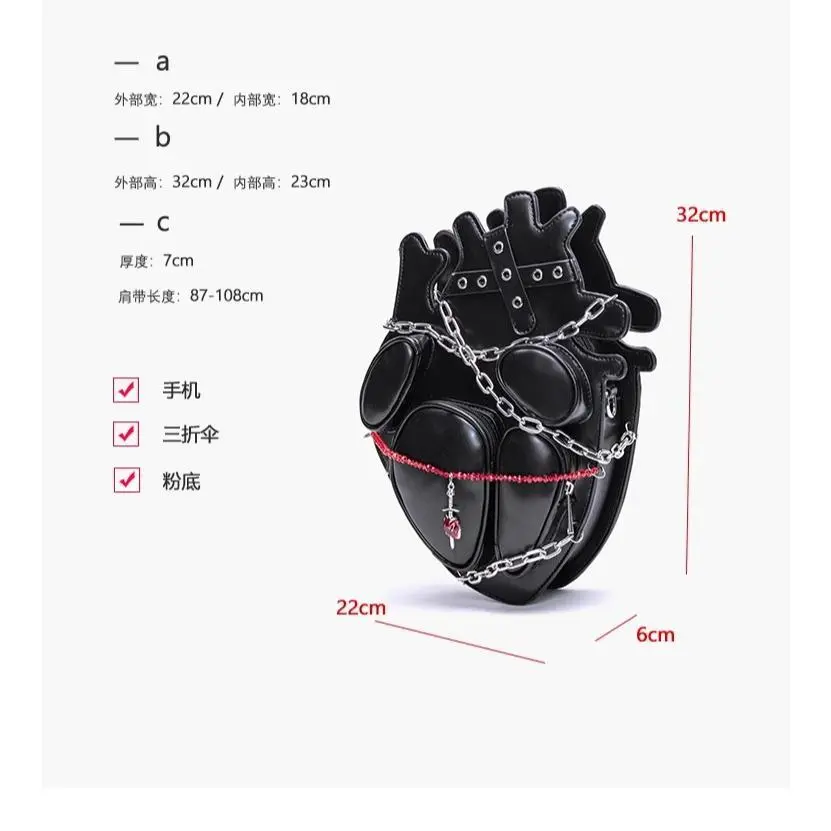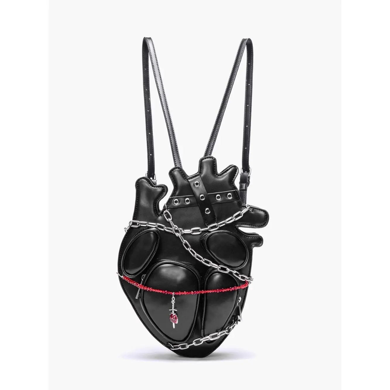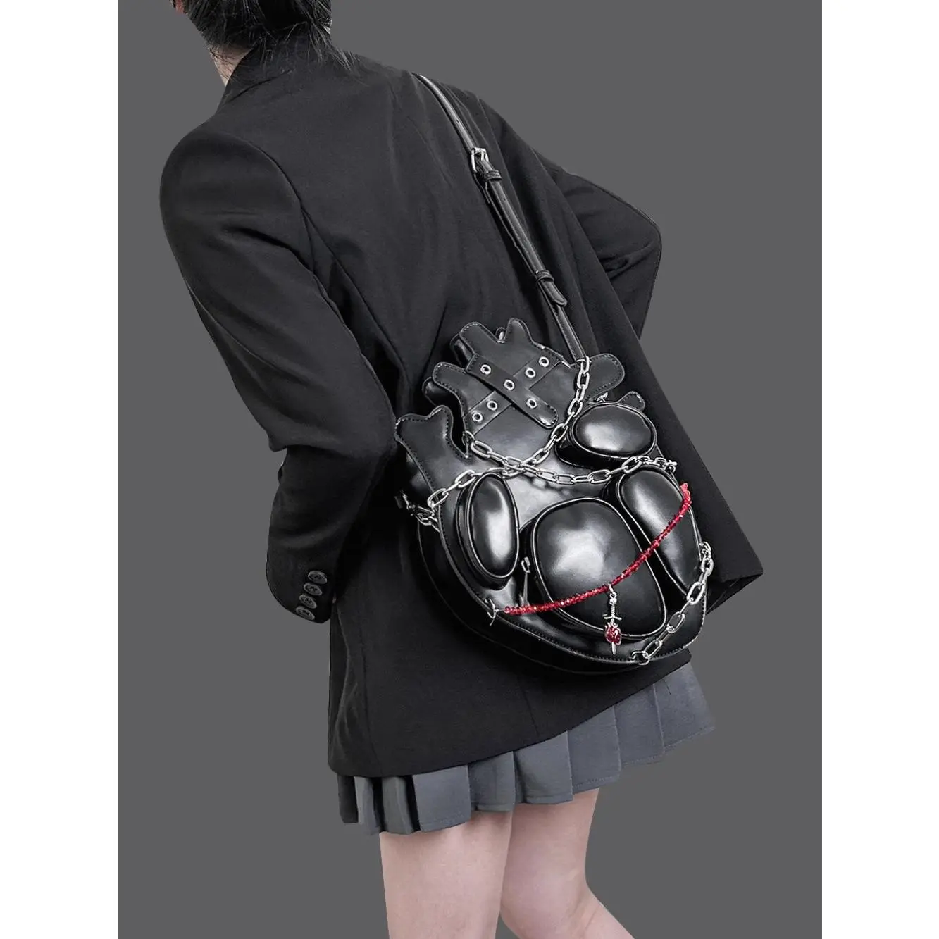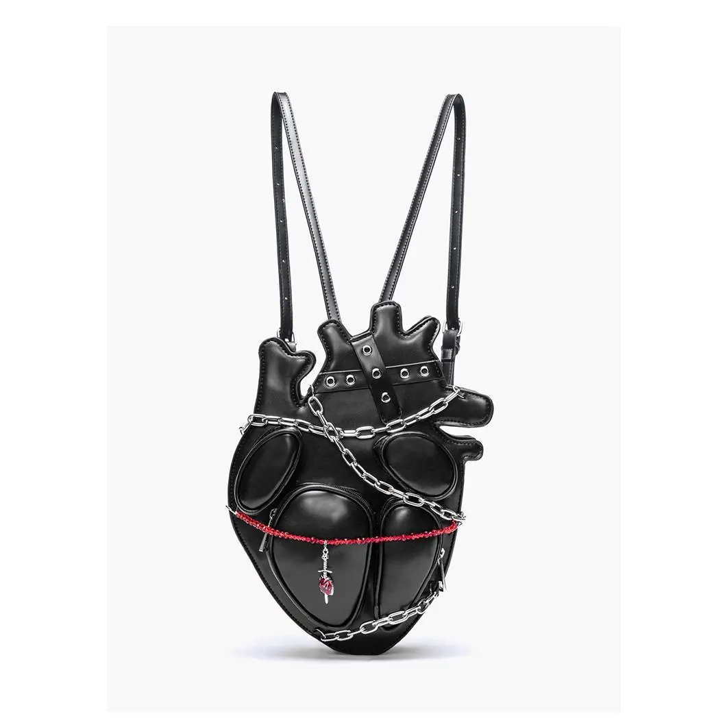 Gothic Punk Metal Hot Girl Bag Lashing Chain Mochila Heart Backpack Y2k Crossbady Bags Woman Original Design Dark Sac Femme