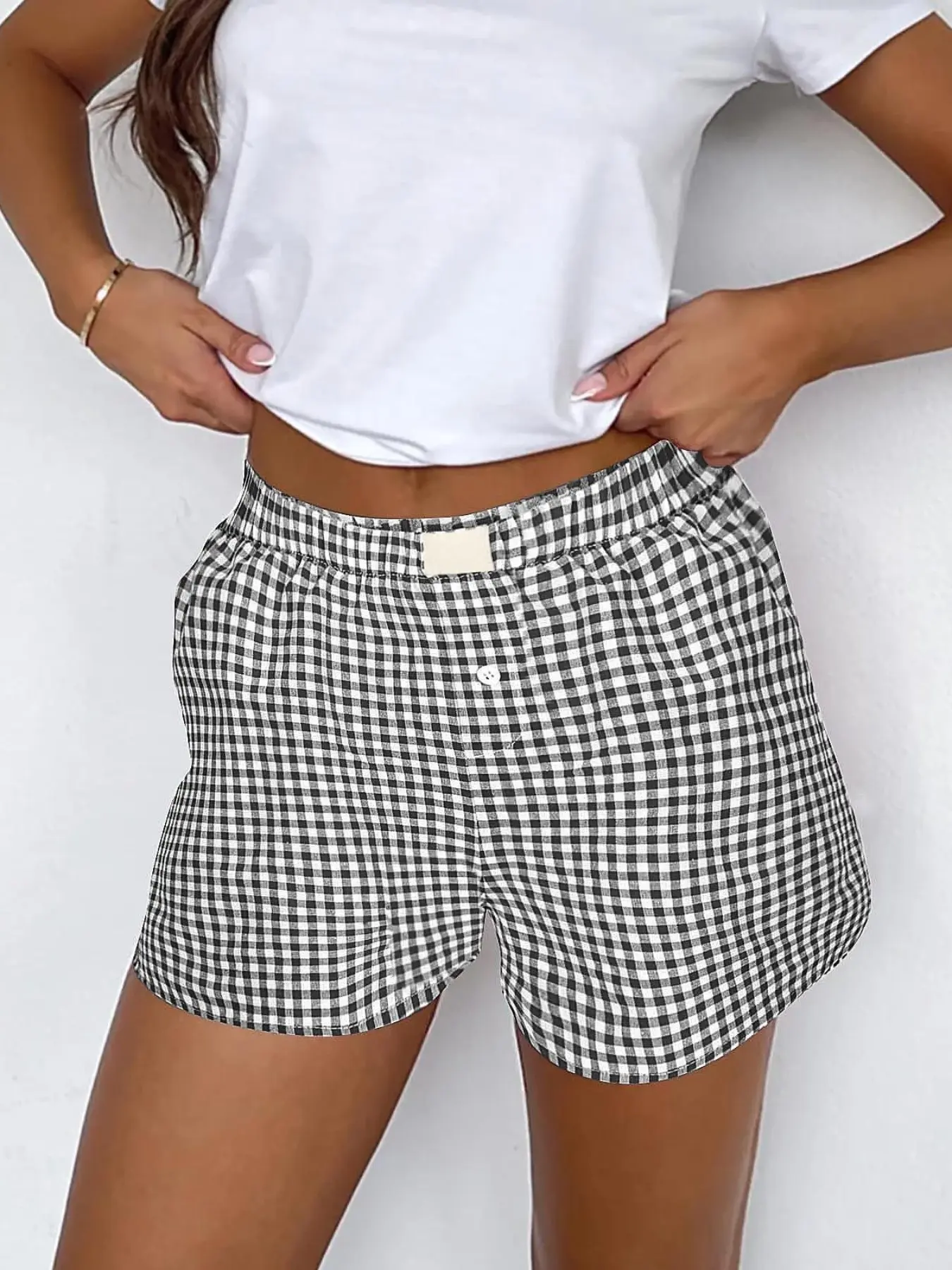 5. Pajama Bottoms Shorts For Women Elastic Boxer Shorts Streetwear Casual Summer Cotton Pajama Low Rise Pj Sleep Shorts Shorts Plaid Shorts Beach Sleepwear Bottoms