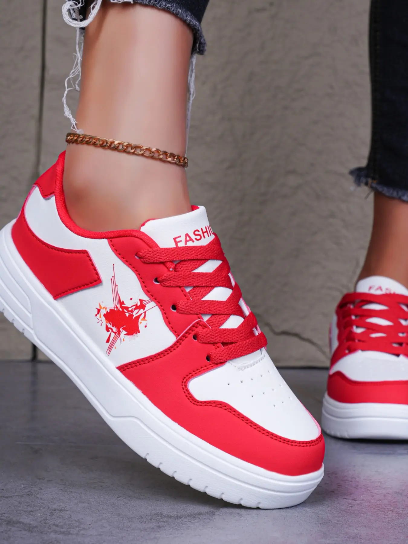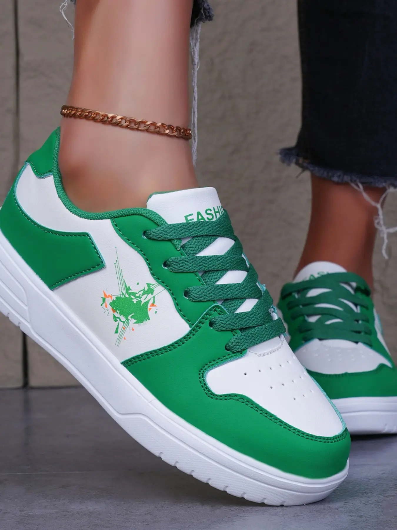 Colorblock Fashion Board Shoes for Women, Daily Commute Versatile Casual Sneakers, All Seasons PU Leather Eva Sole
