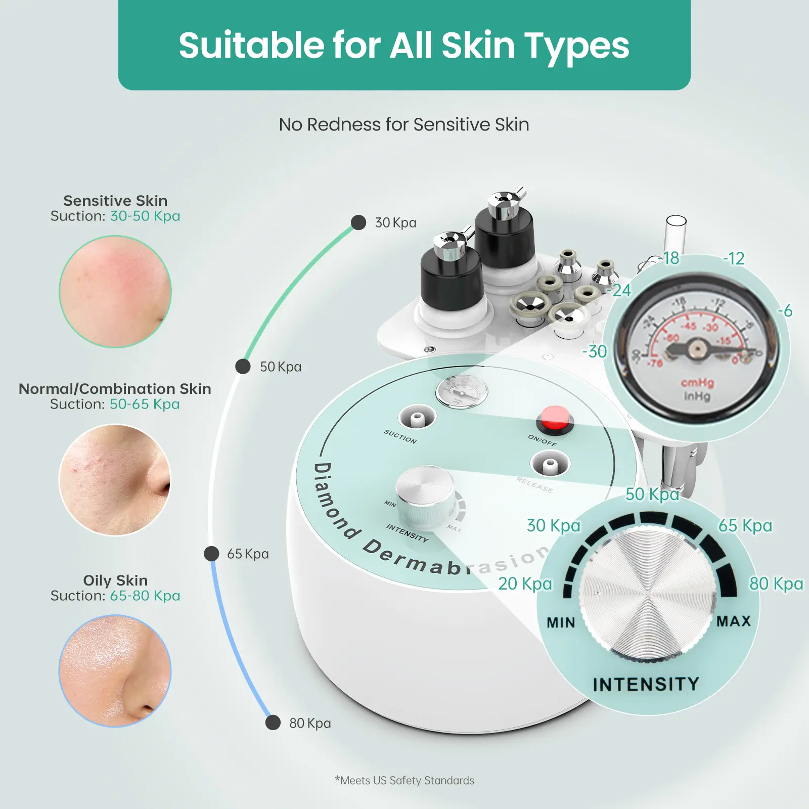 UNOISETION Diamond Microdermabrasion Machine- 3 in 1 Professional Facial Microdermabrasion Tool for Exfoliation & Blackhead Removal for Home Use Skin Care, Reduces Fine Lines, Boosts Serum Absorption