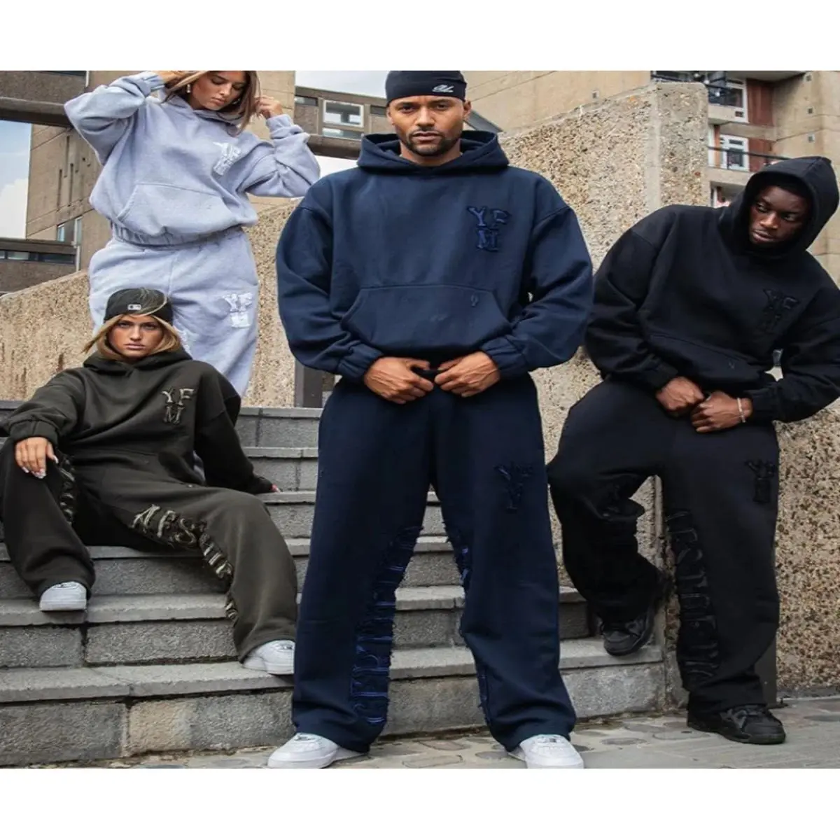 This minimalist sports hoodie set for autumn features a unisex hooded sweatshirt and matching loose sweatpants, designed for cross-border trendy street style. The clean, simple lines highlight a low-key premium texture, while the soft, moderately thick fabric provides lightweight warmth for cool fall days. With a relaxed, oversized fit, it ensures all-day comfort and free movement, suitable for casual daily wear, outdoor activities, school, or street fashion. The cohesive two-piece design saves matching time and creates a neat, fashionable look effortlessly. Ideal for both men and women, it combines practicality, comfort, and modern trend, making it a versatile essential for autumn casual outfits.Material: High-quality