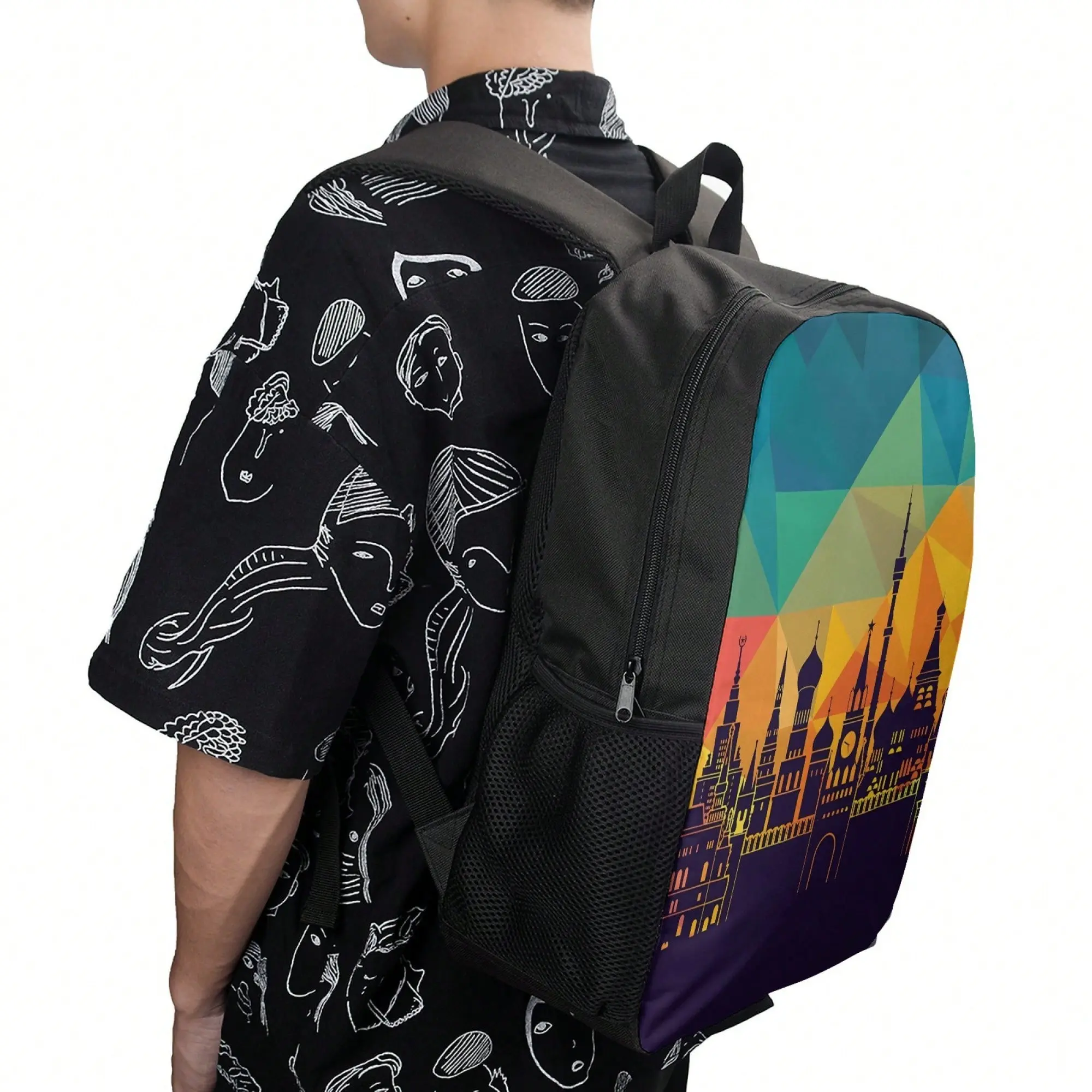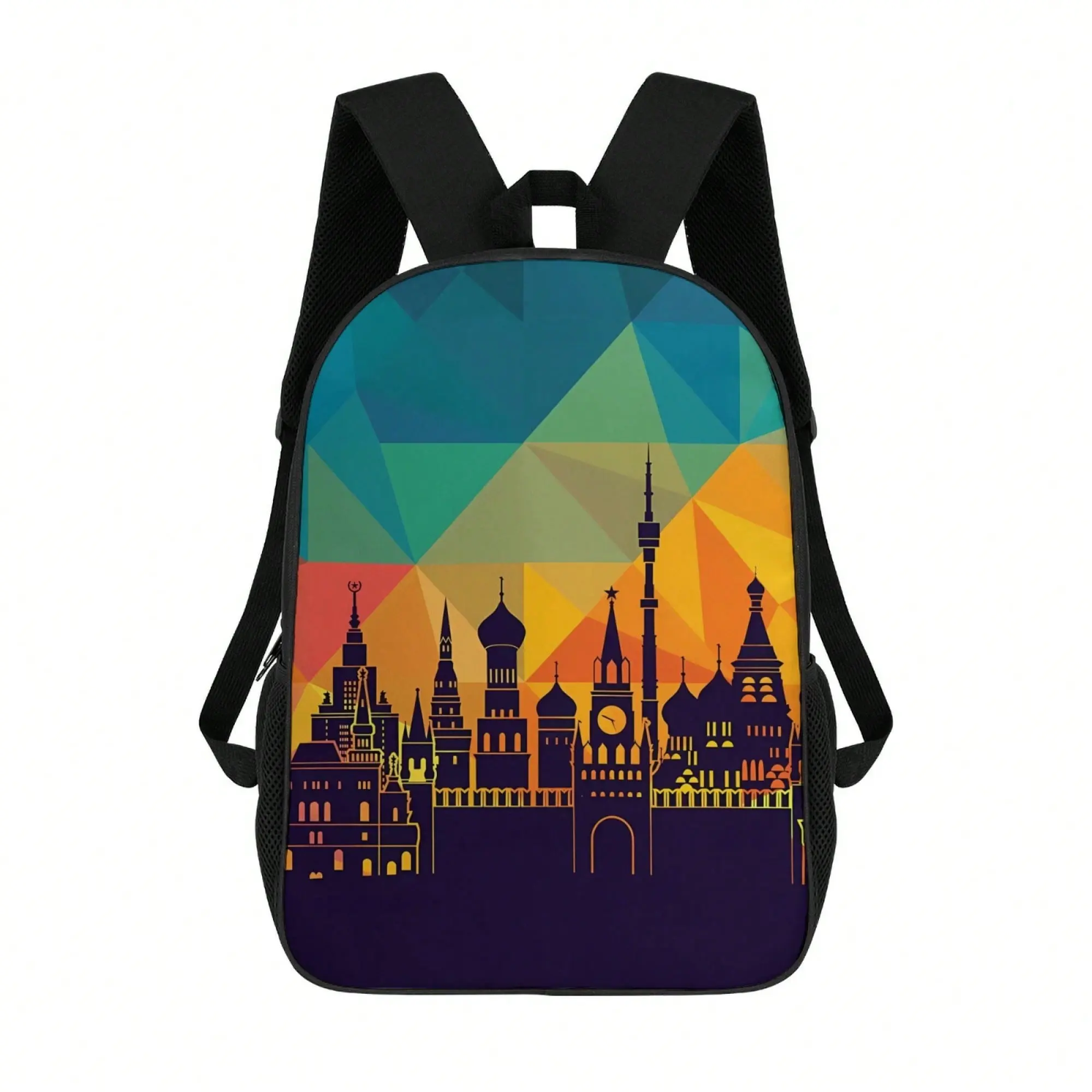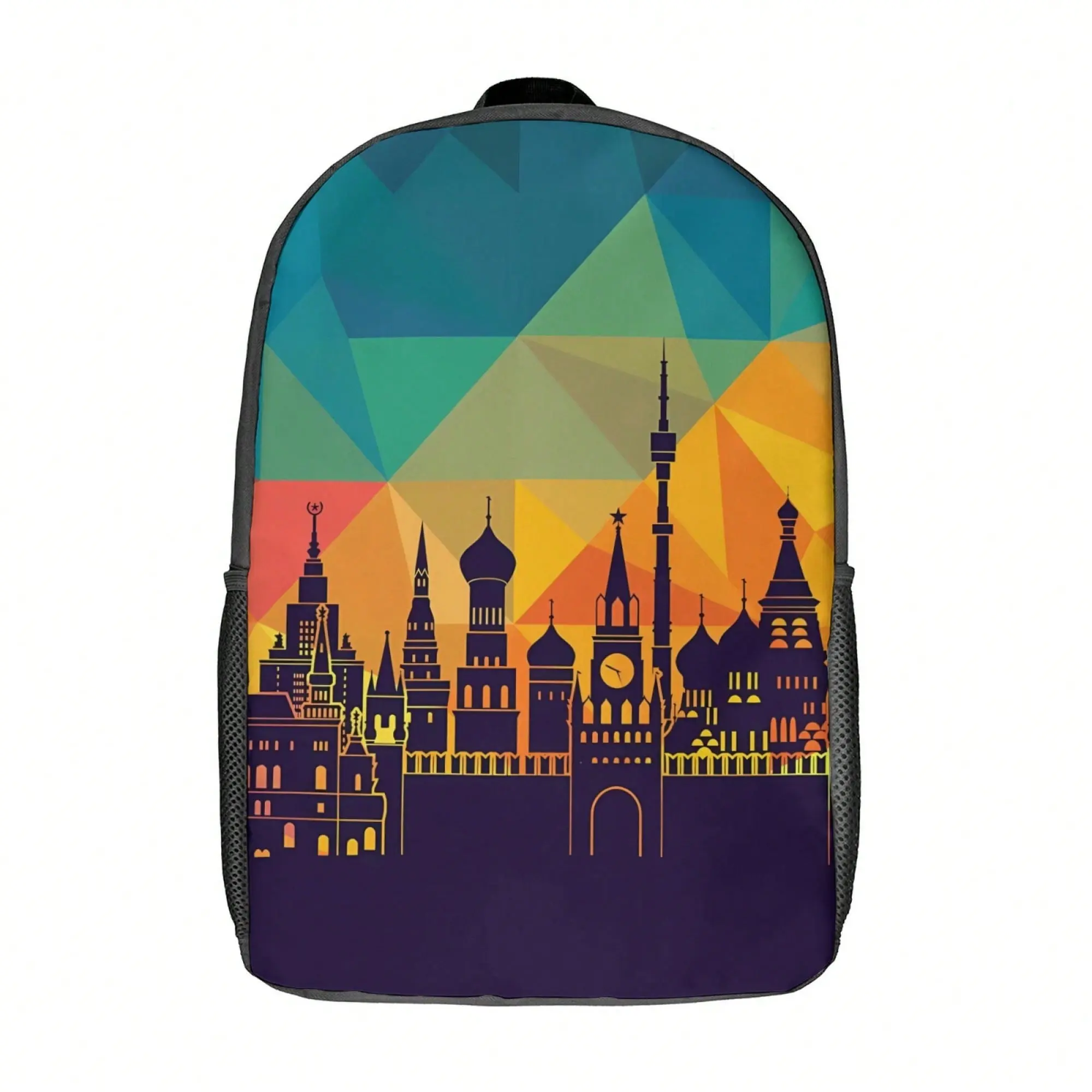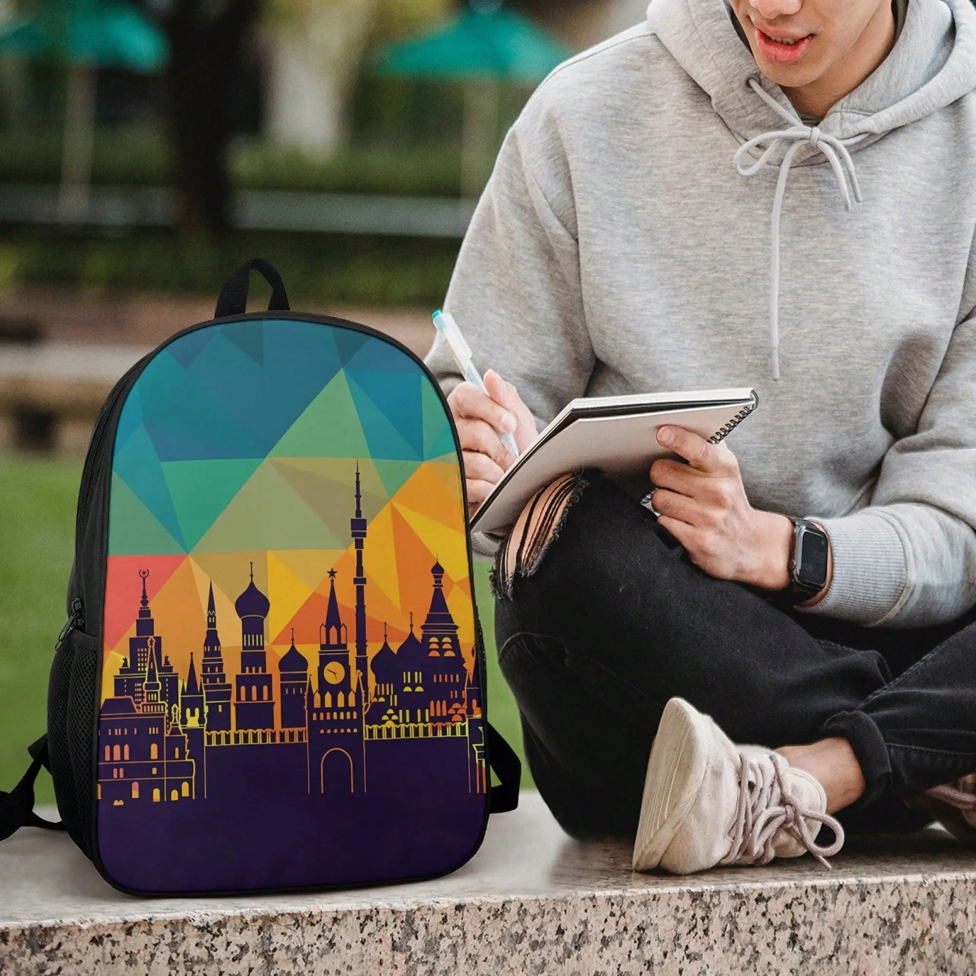 Showcase iconic Moscow city skyline with a stunning geometric gradient print! This eye-catching backpack features a colorful, modern silhouette of Moscow's famous landmarks, blending art and style for a unique, head-turning look perfect for travel lovers and city enthusiasts.