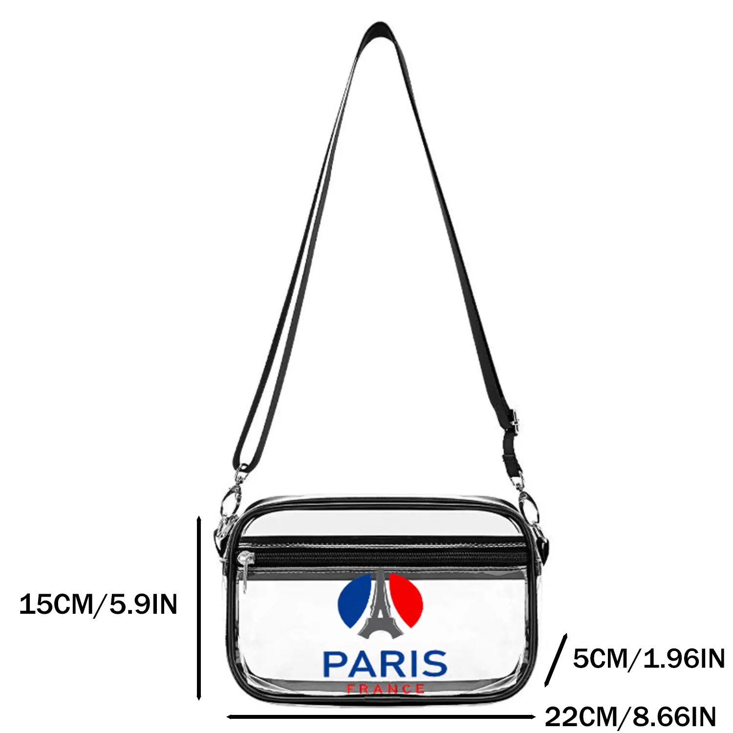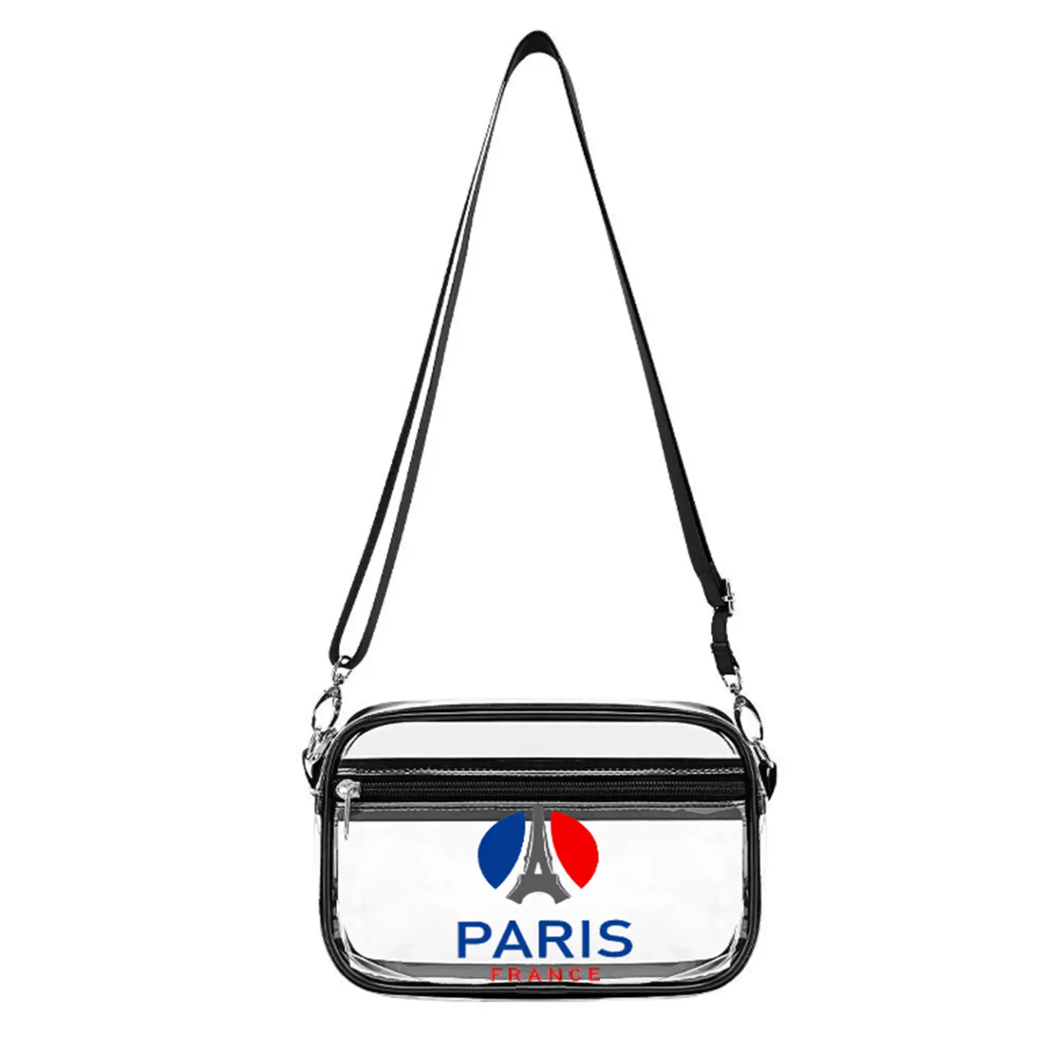 Featuring a stylish Eiffel Tower graphic with France's iconic blue, white, and red colors, this bag blends functional clarity with timeless Parisian charm. The bold "PARIS FRANCE" print adds a chic, travel-inspired touch to any outfit, ideal for city lovers and travel enthusiasts.