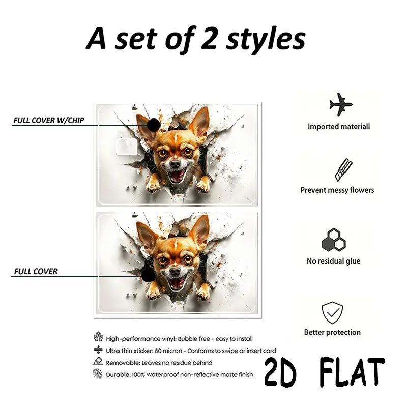 2-Pack Dog Pattern Credit Card Stickers, Ultra-Thin Waterproof Scratch-Resistant, Personalized Bank Card Decorative Stickers, Durable Waterproof Stickers