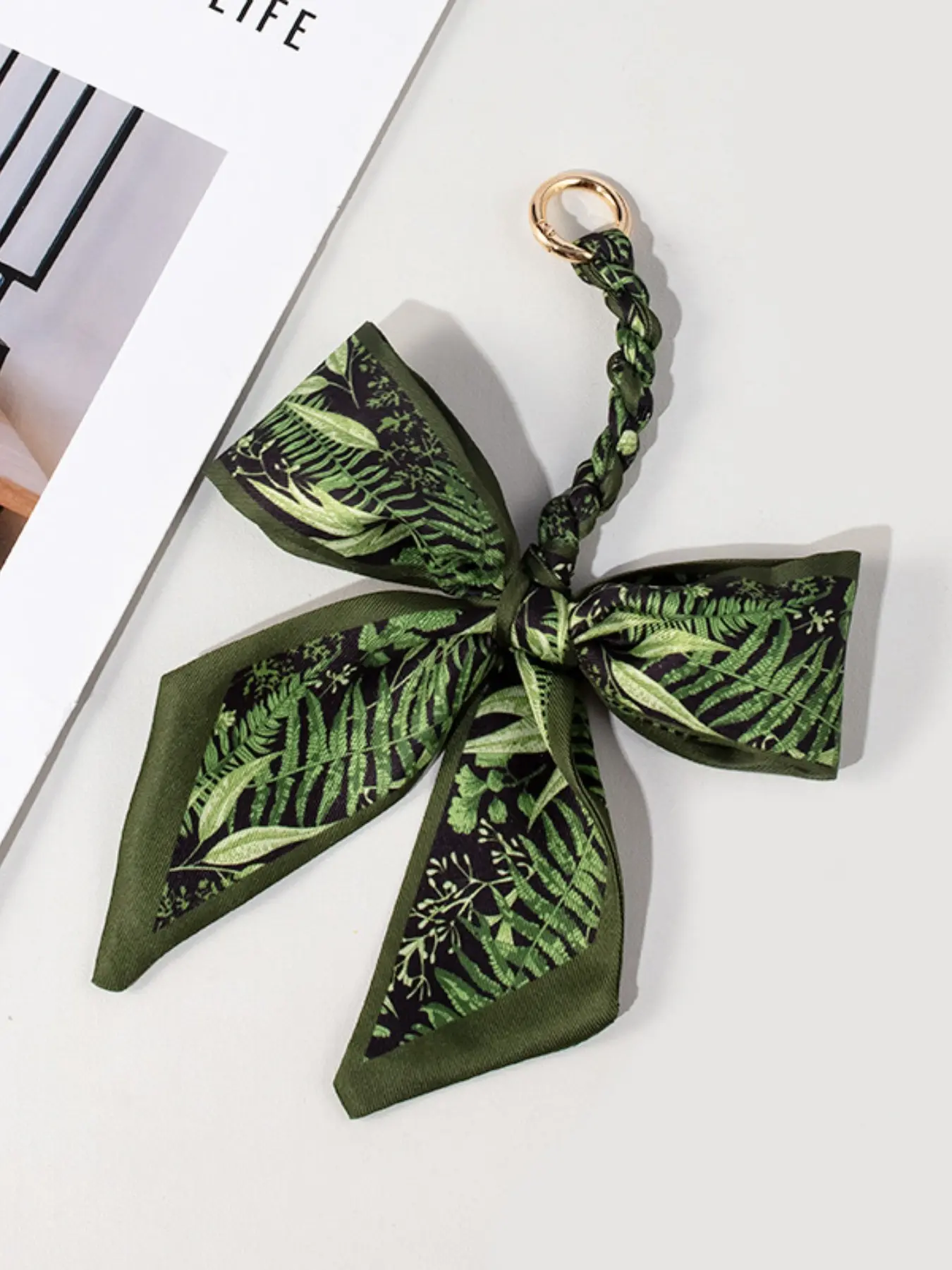 5. European and American Style Bow Bag Charm, Geometric Pattern Keychain Pendant, All-Season Silk Scarf Weaving Accessory