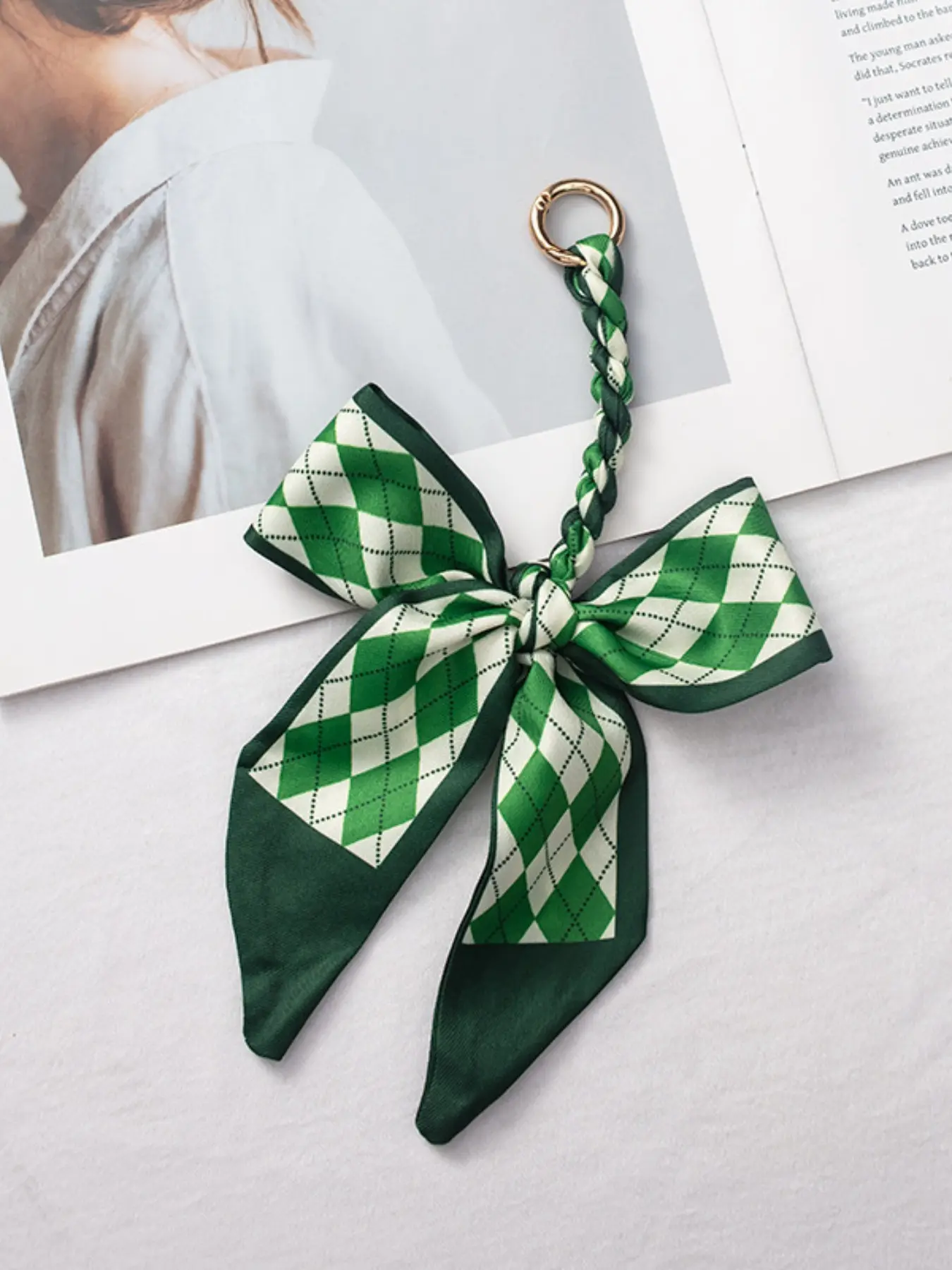European and American Style Bow Bag Charm, Geometric Pattern Keychain Pendant, All-Season Silk Scarf Weaving Accessory