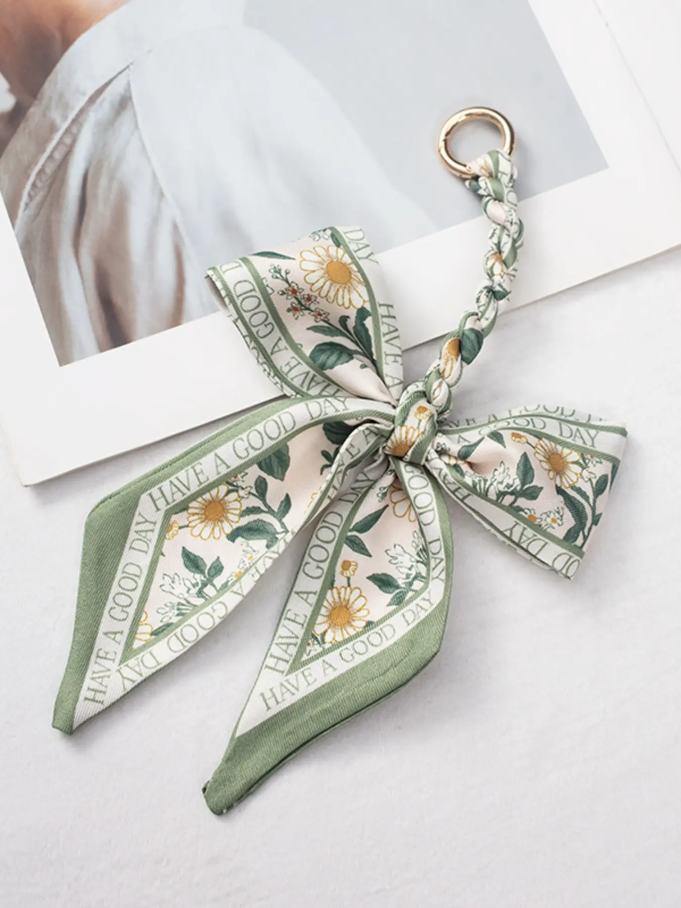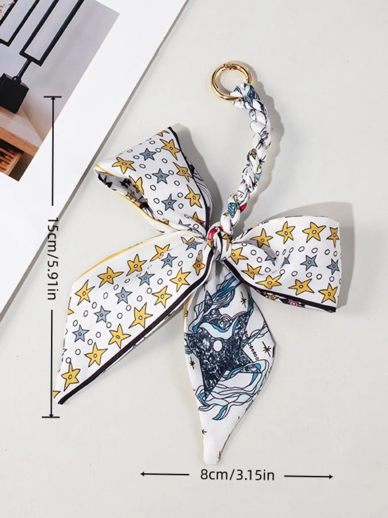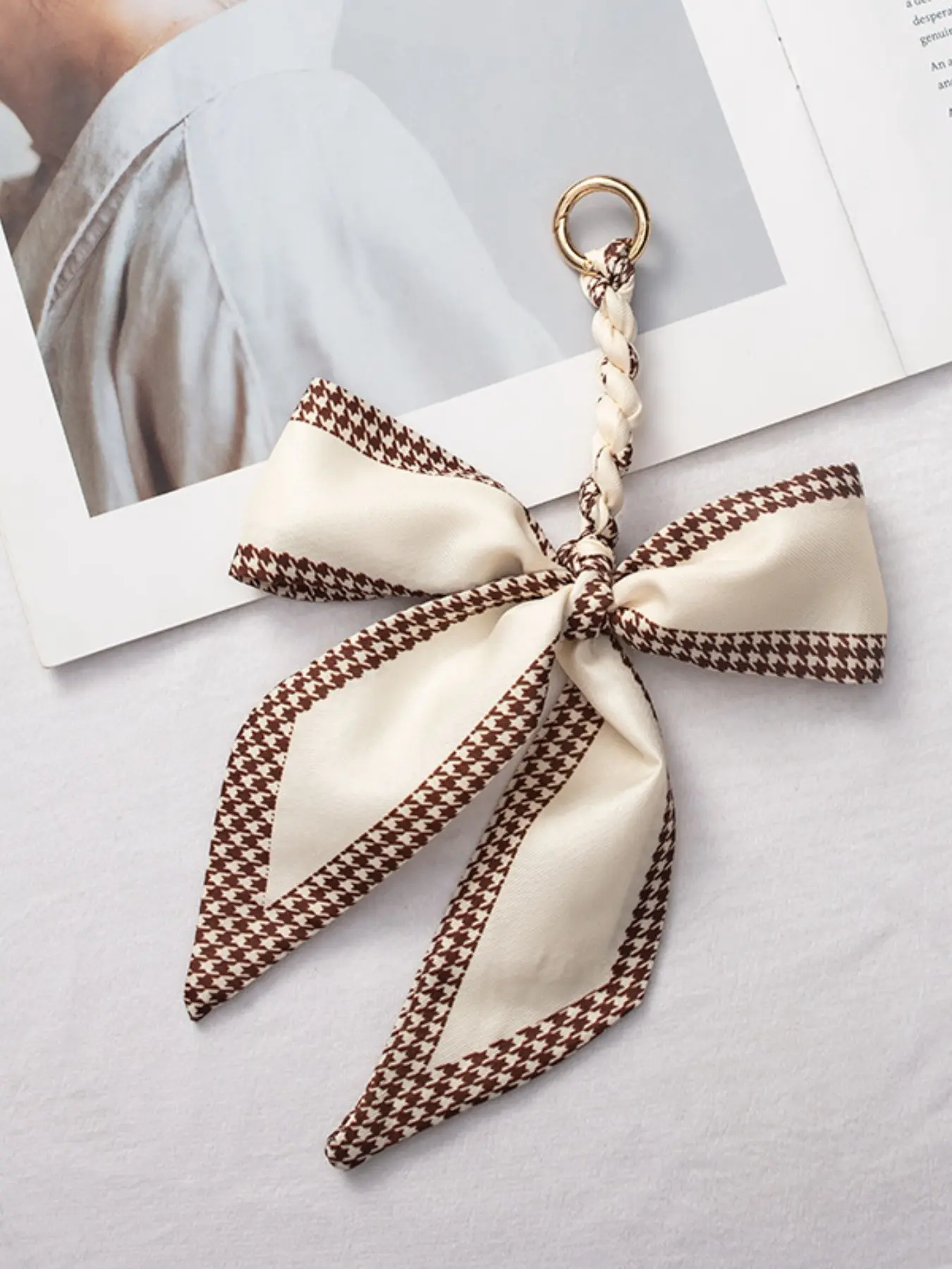 European and American Style Bow Bag Charm, Geometric Pattern Keychain Pendant, Sweet Design for All Seasons, Silk Scarf Weaving Accessory