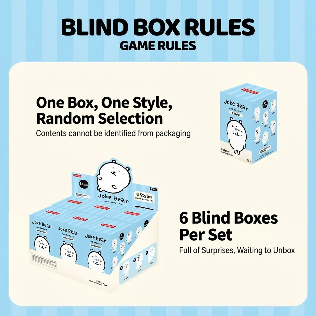 Each blind box holds a fun surprise—you never know which of the 6 mood-themed Joke Bear figurines you’ll get! With equal probability for each style, the thrill of unboxing is exactly why blind boxes are trending on TikTok—share your unboxing moment, show off your new figurine, and tag your friends to join the fun!