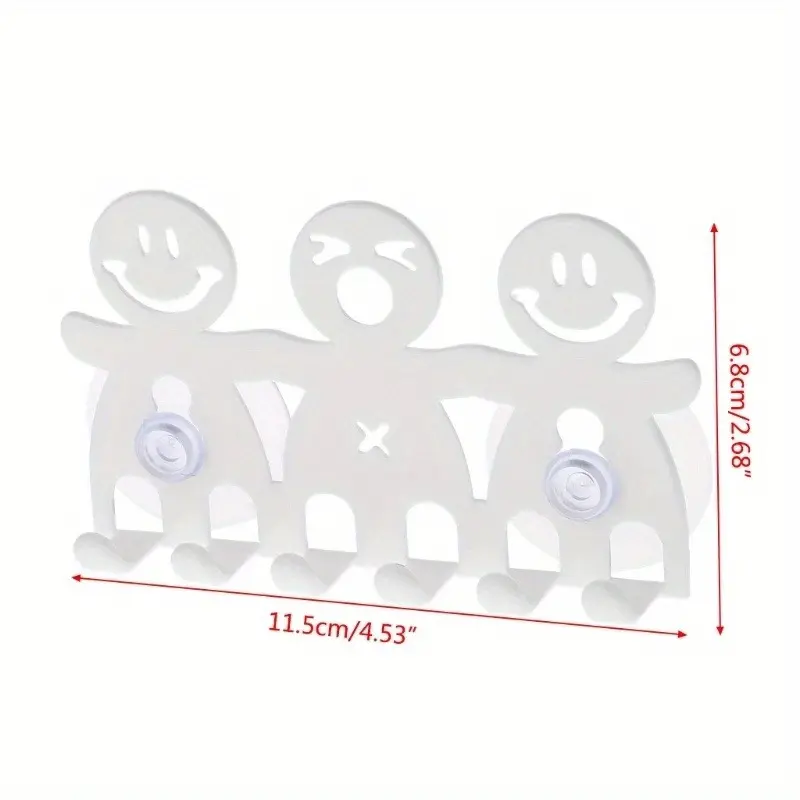Smiley Face Wall-Mounted Toothbrush Holder with Suction Cups - 5 Position Toothbrush Storage Rack - Portable Bathroom Accessories