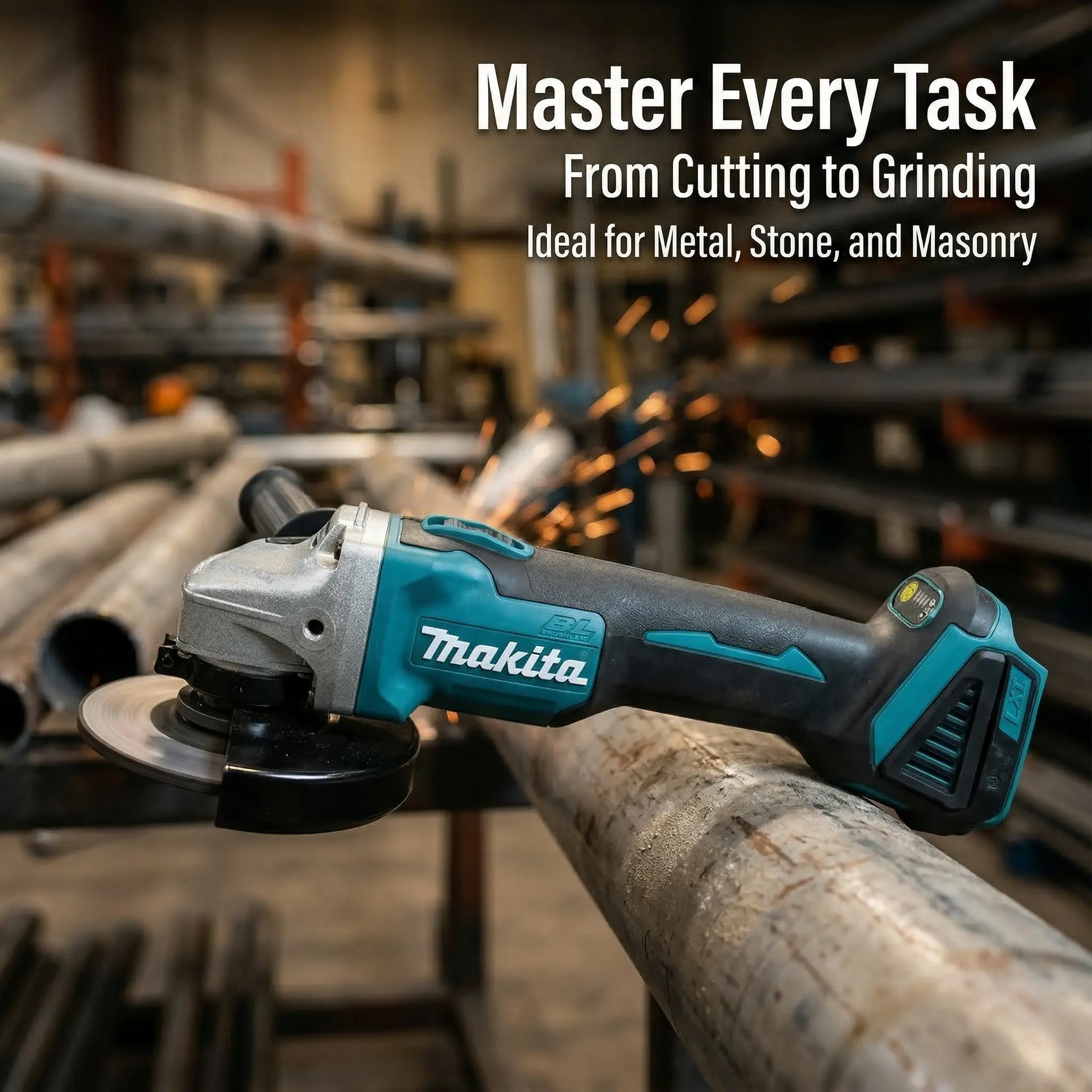 Makita DGA404 125mm Cordless Brushless Grinder Kit With 18V Lithium Battery For DIY And Professional Use, 2.4kg Lightweight