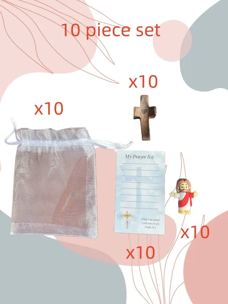20 Pack Mini Jesus Figurine with Cross, Inspirational Prayer Card “My Lord, My God, My Savior” – Perfect Christian Easter Gifts & Religious Souvenirs for Bulk Gifting