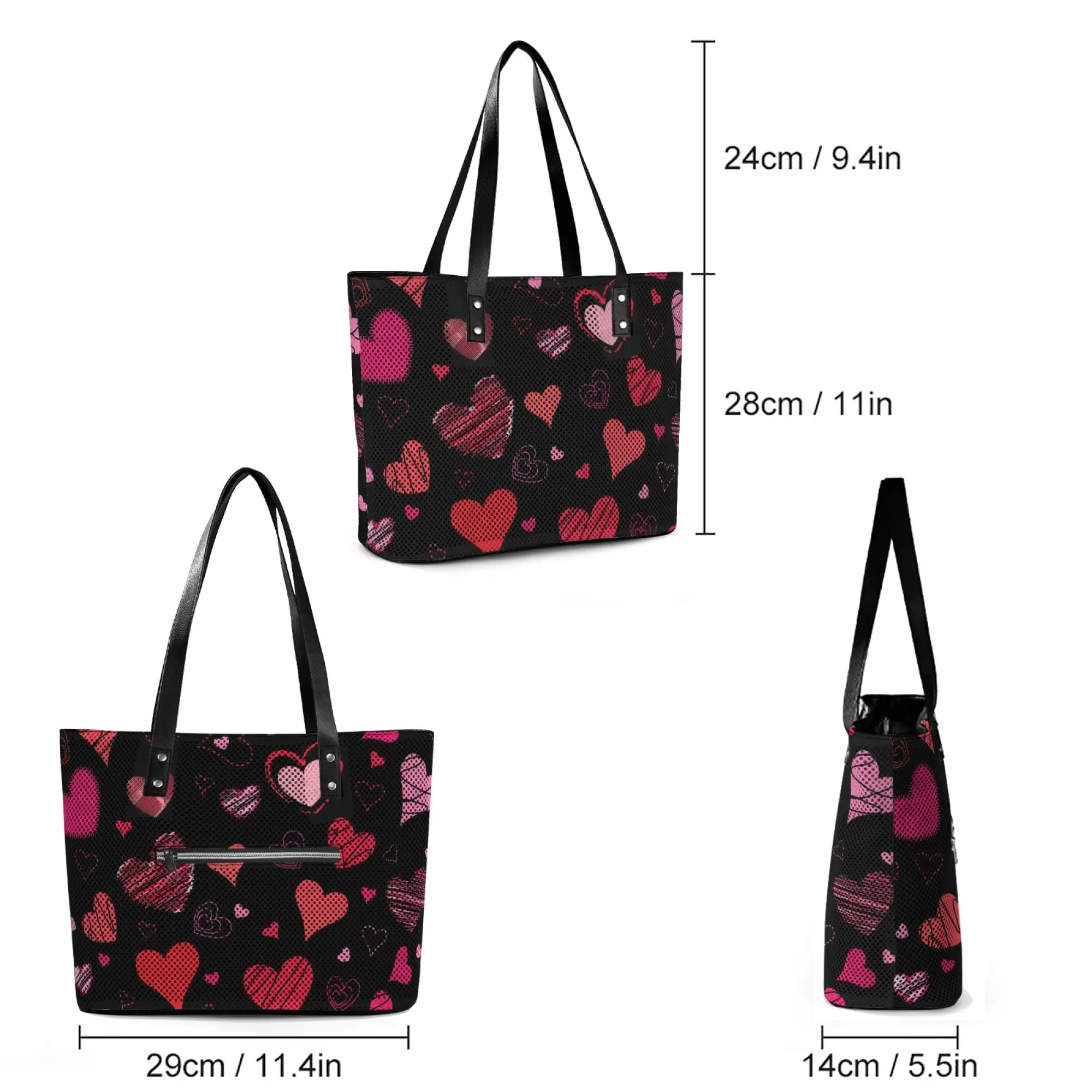 This stylish tote bag is your ultimate everyday companion: perfect for work commutes, school, shopping, travel, gym sessions, and weekend getaways. Its romantic heart design makes it a thoughtful gift for women, moms, girlfriends, and friends for birthdays, anniversaries, or Valentine's Day.