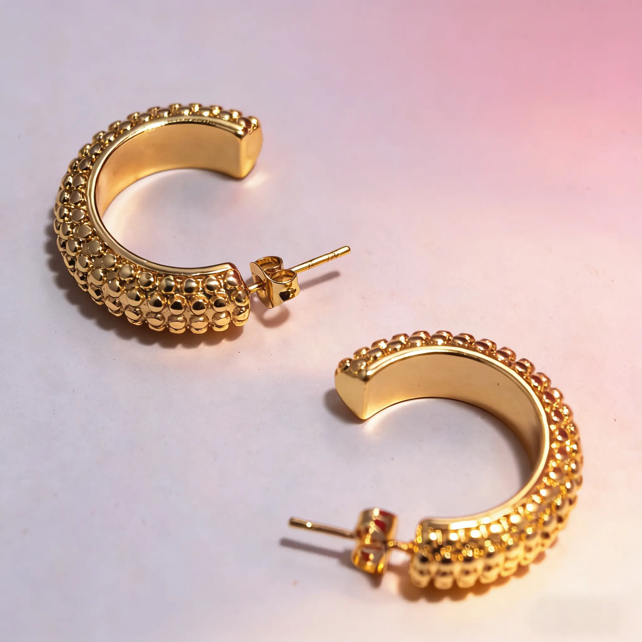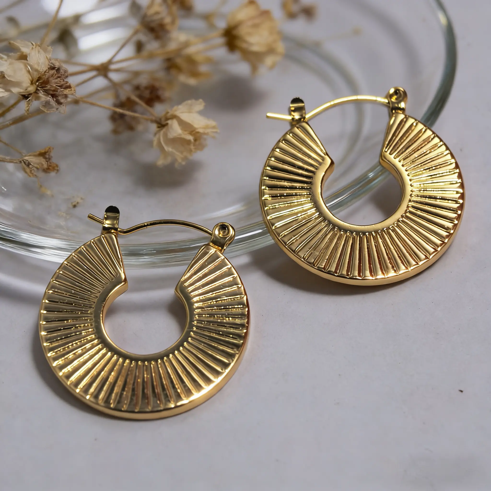 This set is perfect for women who love versatile jewelry. The 18K gold plating ensures a luxurious look. The textured beads and sunburst design add a unique touch. Ideal for gifting, these earrings are hypoallergenic and waterproof. They resist tarnish, maintaining their shine.