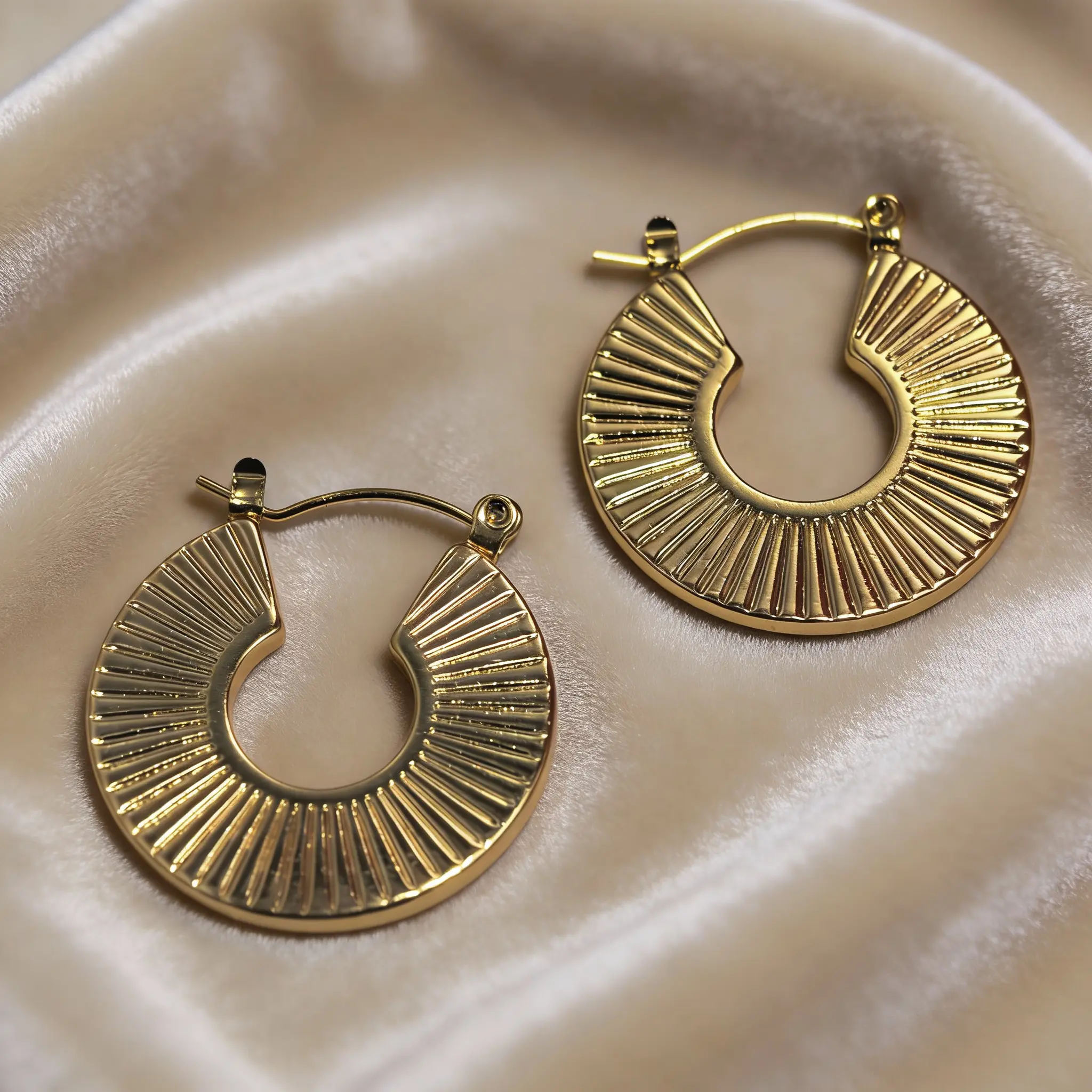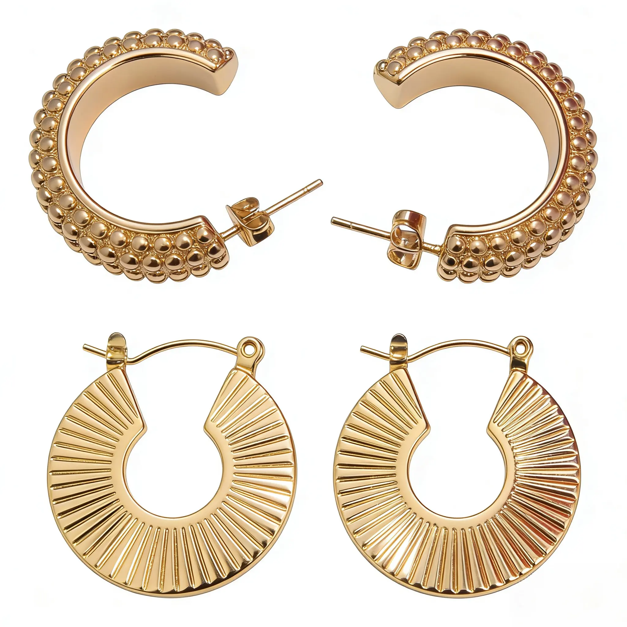 18K Gold Plated Hoop Earrings Set for Women - 2 Pairs Gold Hoops, Textured Beaded & Sunburst Statement Earrings, Hypoallergenic , Waterproof Tarnish-Resistant Fashion Jewelry Gifts