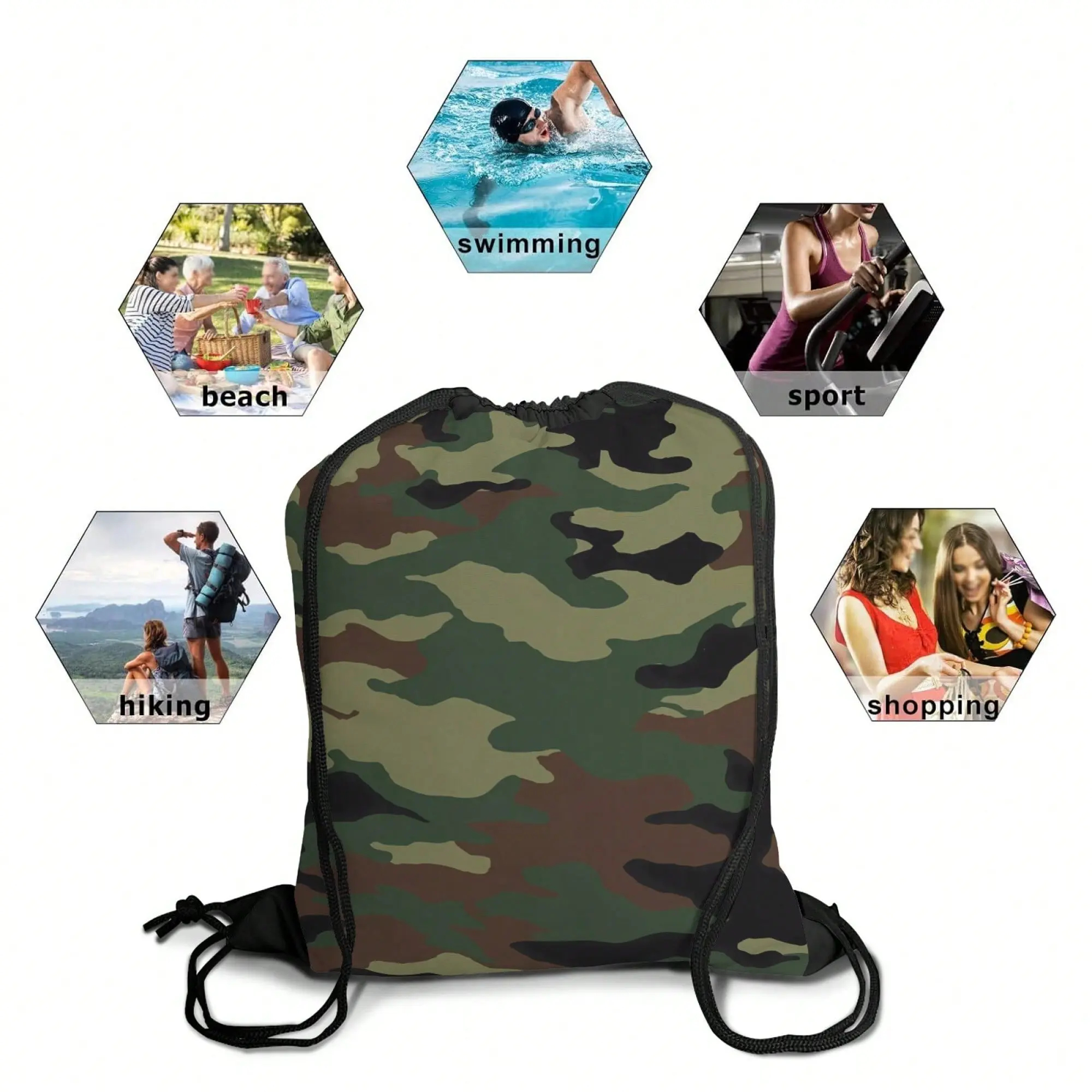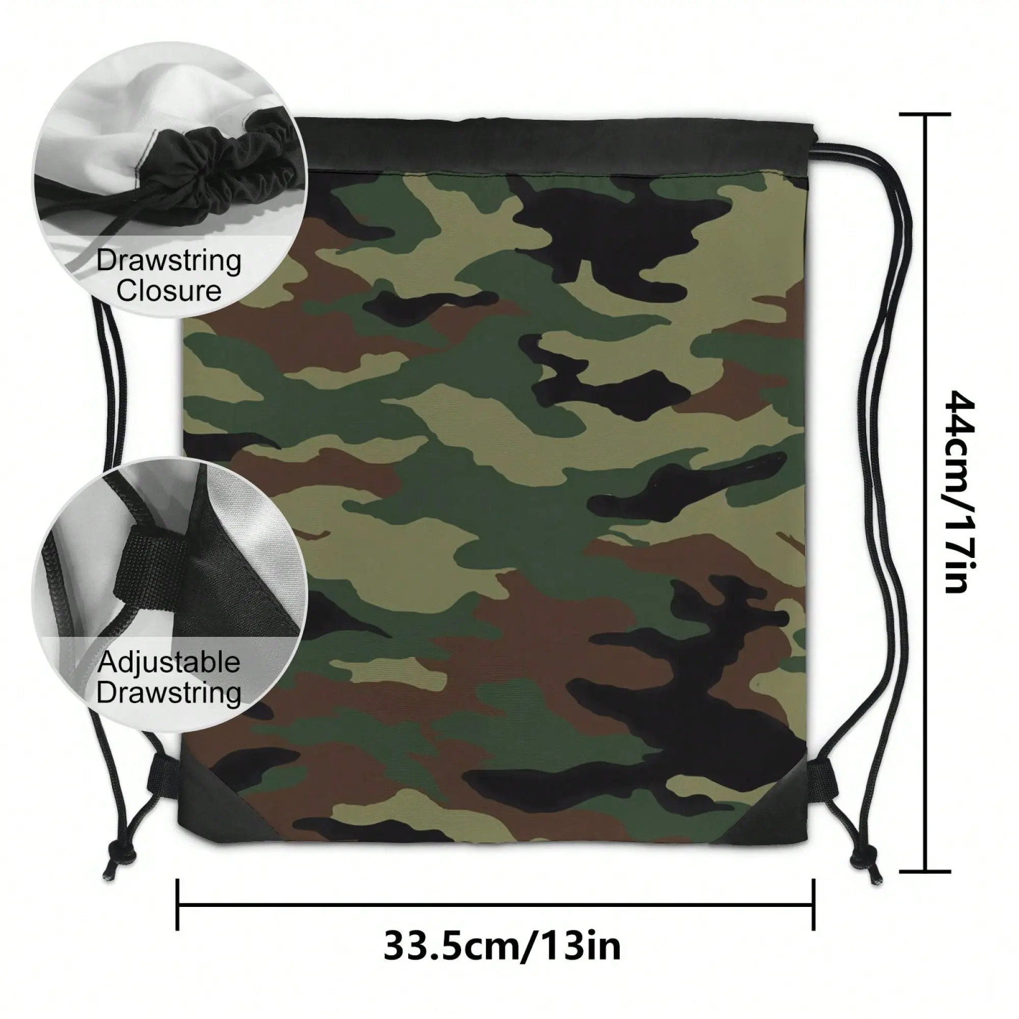 Featuring a timeless woodland camo print, this drawstring backpack delivers rugged, versatile style perfect for outdoor enthusiasts, students, and casual use. The iconic pattern blends durability with a sleek, functional aesthetic, making it a go-to for any adventure.