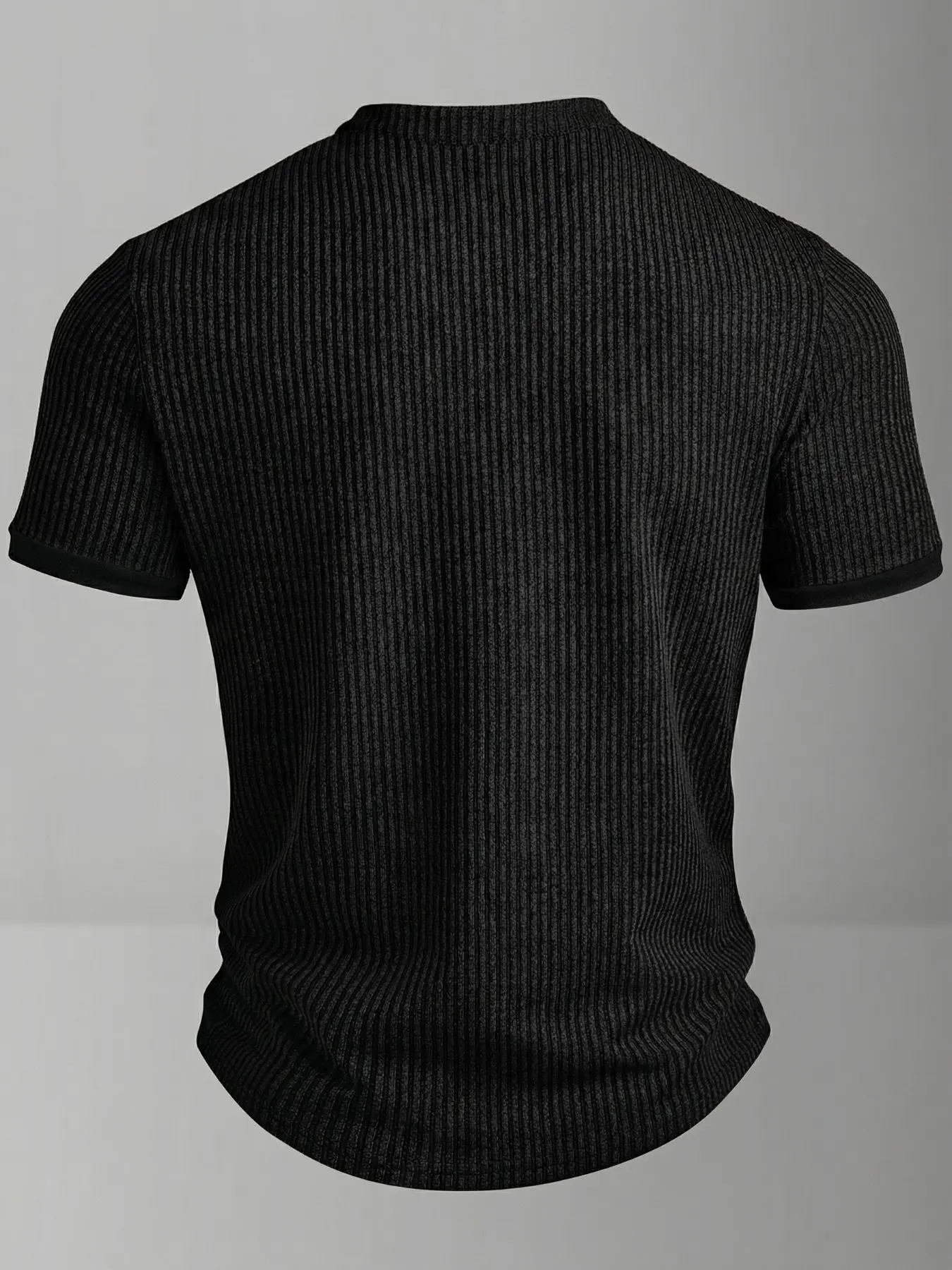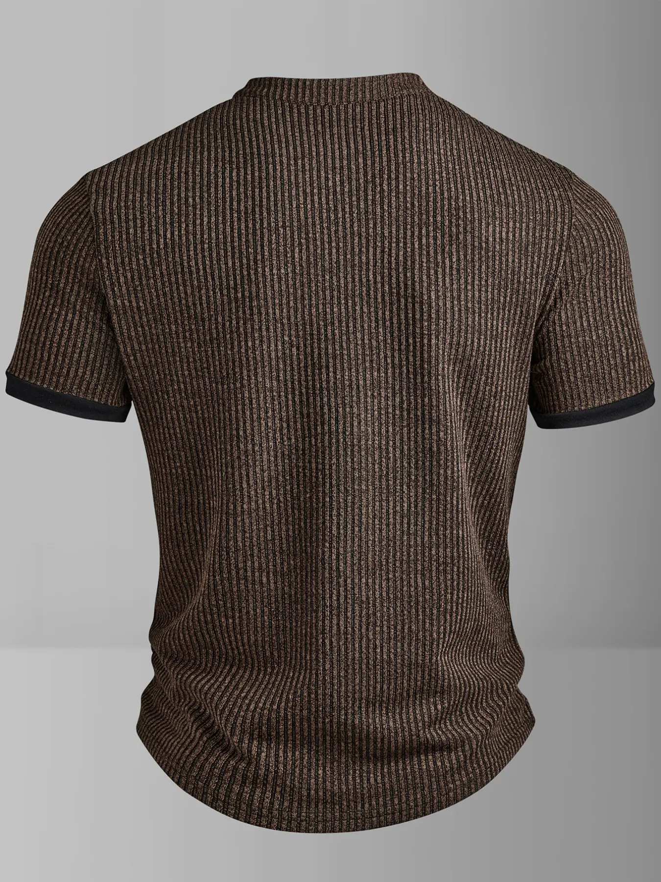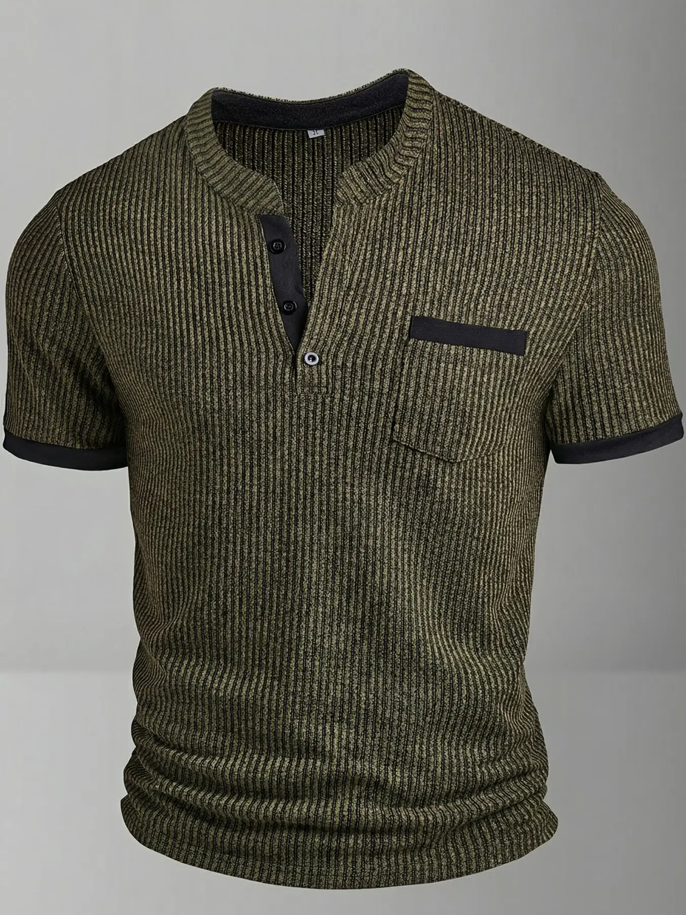 Spring New Men's Casual Fashion Textured Two-Tone Striped Henry Shirt, Short Sleeve, Small Stand Collar, Polyester Fiber