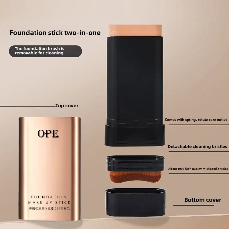 Dual-Ended Eraser Foundation Stick, Multi-Functional with Brush Head, Lightweight Foundation, Conceals Blemishes, Brightening, Natural Matte Finish