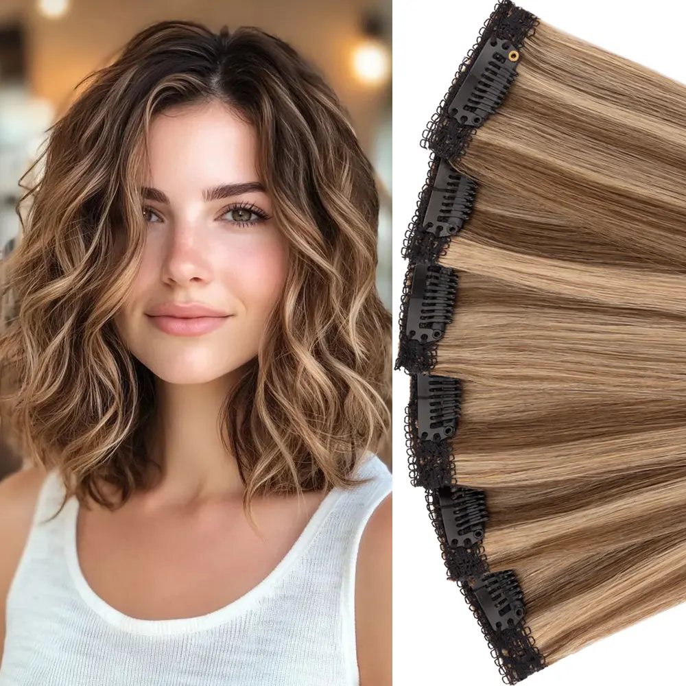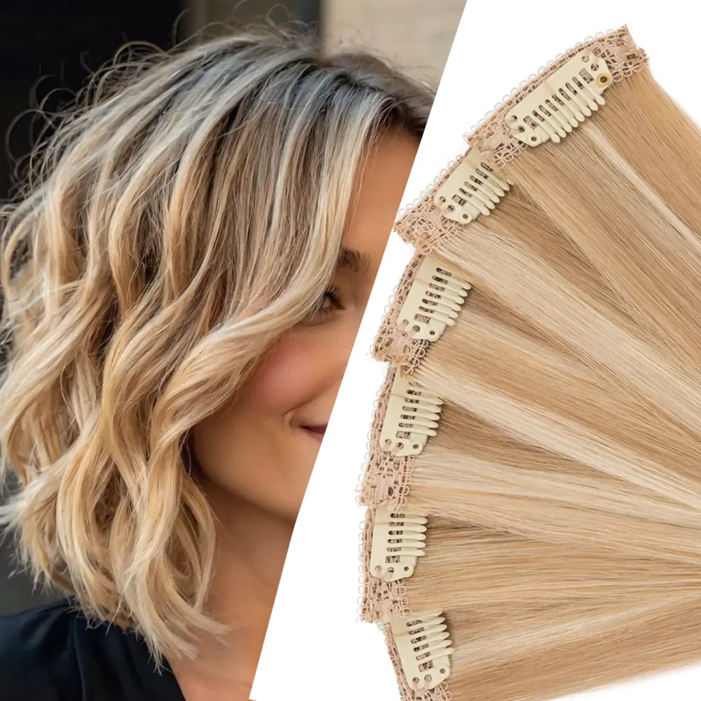 ·Premium Human Hair Extensions: Clip in short hair extensions are made from 100% human hair, soft, silky, and healthy, blending perfectly with your natural hair. They can be washed, trimmed, curled, straightened, and styled
